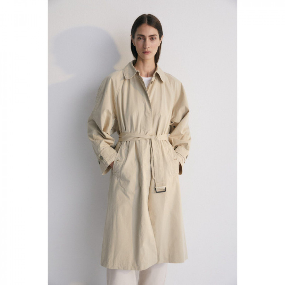 Жіночий тренч вишуканого кремового кольору. Невимушений сілует та зручний пасок.