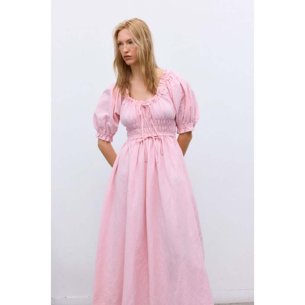 Один з наших бестселерів, виготовлений з м'якого 100% льону, виготовленого в Португалії. Має еластичну горловину, рукави та талію, а також зав'язку для регулювання. Доступний у трьох яскравих, вишуканих кольорах, ідеальних для цього сезону.