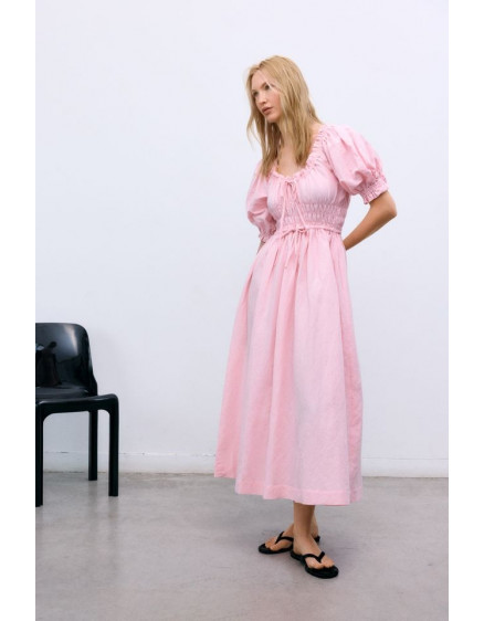 Один з наших бестселерів, виготовлений з м'якого 100% льону, виготовленого в Португалії. Має еластичну горловину, рукави та талію, а також зав'язку для регулювання. Доступний у трьох яскравих, вишуканих кольорах, ідеальних для цього сезону.