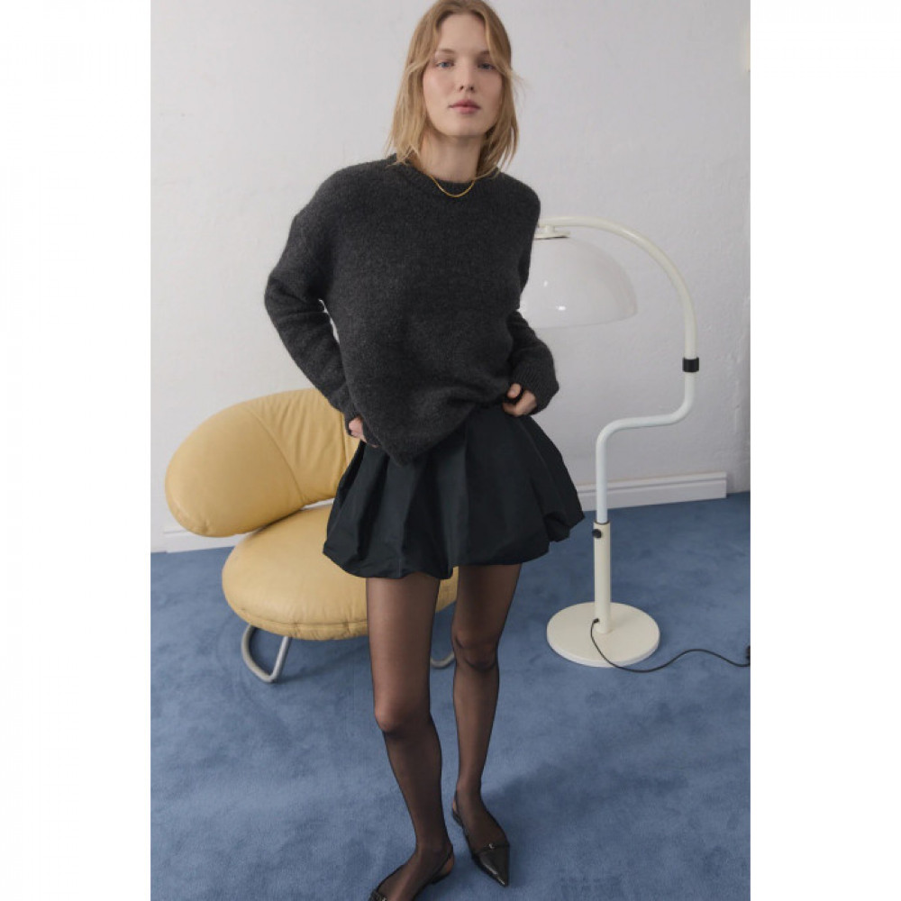 Суперм’який однотонний светр із ребристим круглим коміром, ребристим краєм і манжетами.