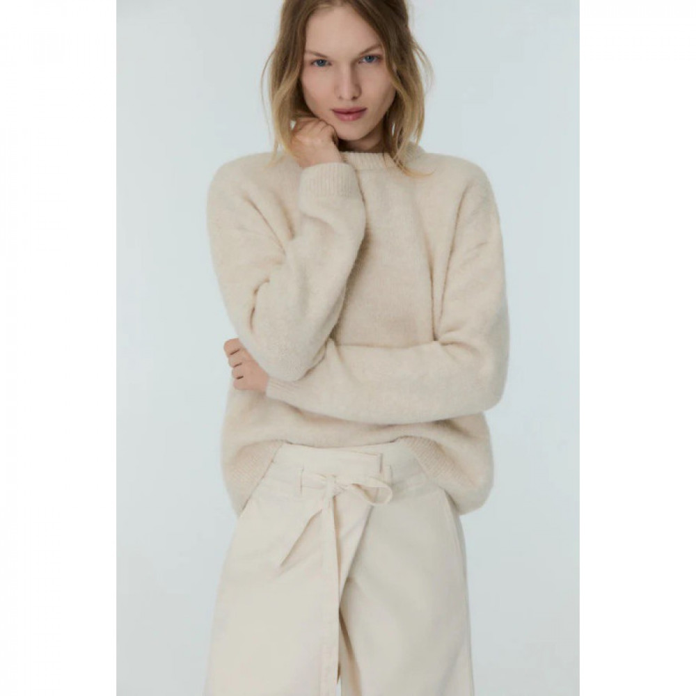 Суперм’який однотонний светр із ребристим круглим коміром, ребристим краєм і манжетами.