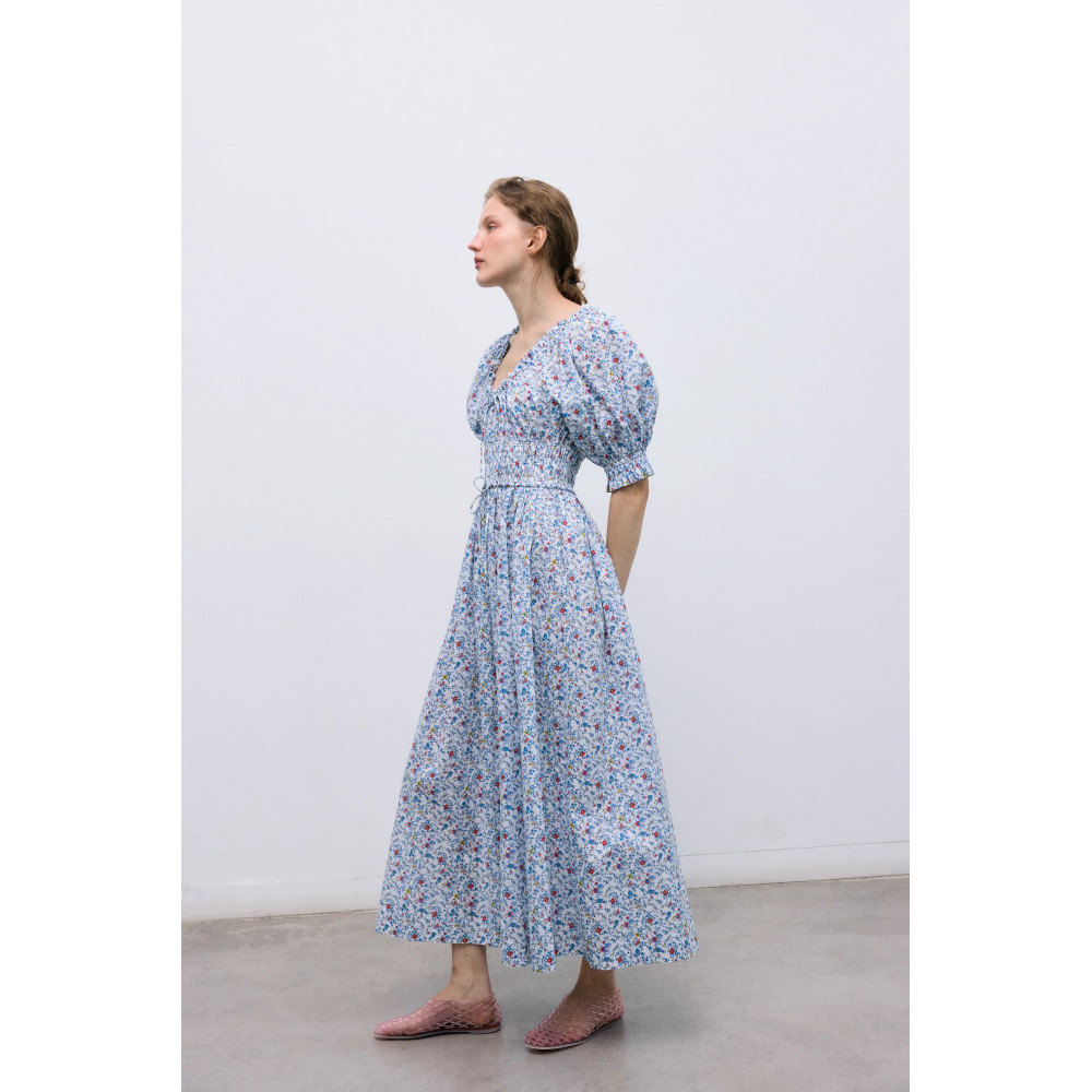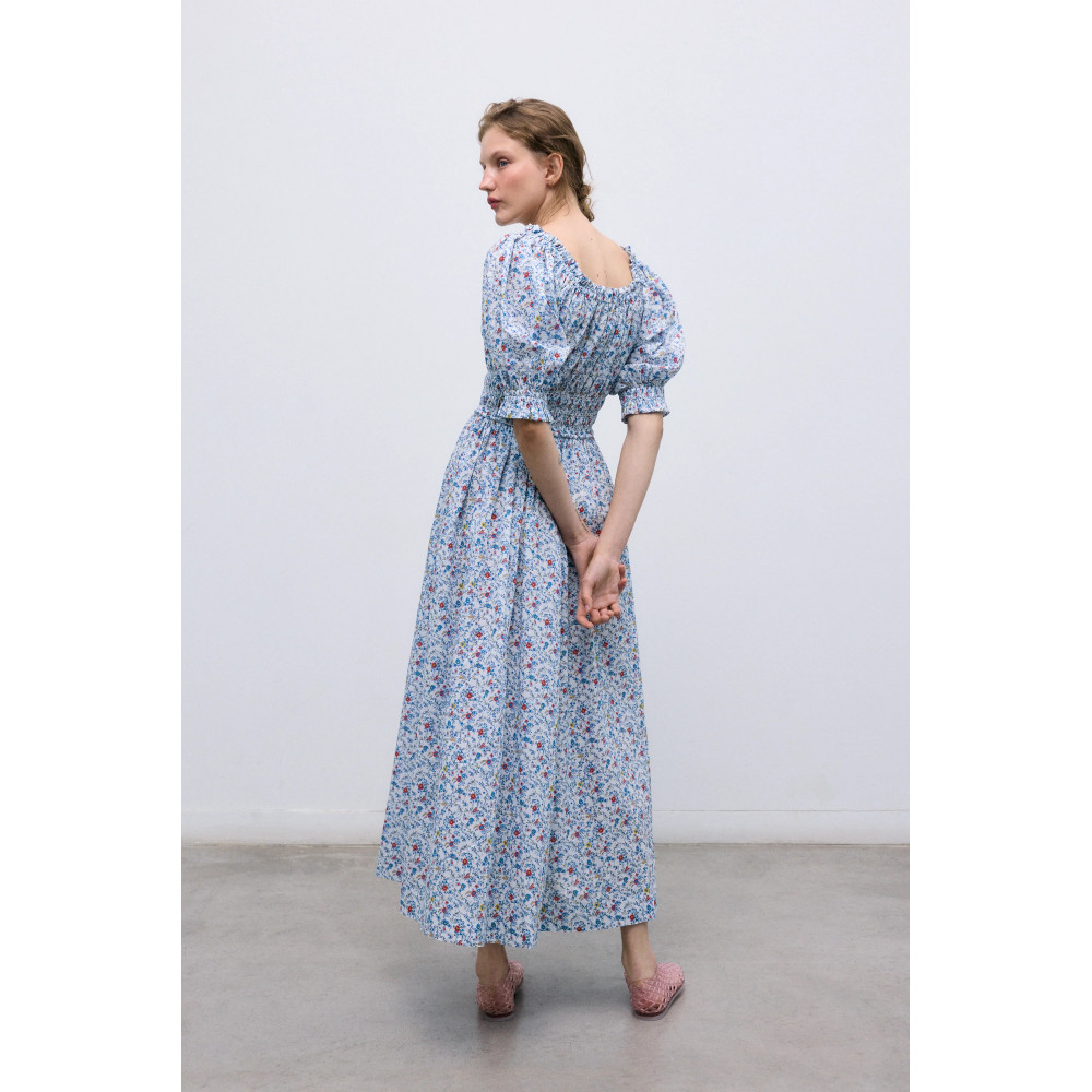 Один з наших бестселерів, виготовлений з м'якої, свіжої бавовни. Має еластичні деталі на грудях із зав'язкою та об'ємні рукави, оздоблені гумкою та рюшами, що створюють грайливий та елегантний образ. Зроблено в: Португалія