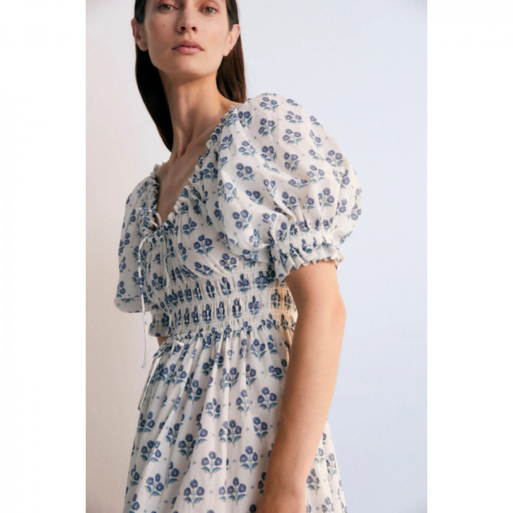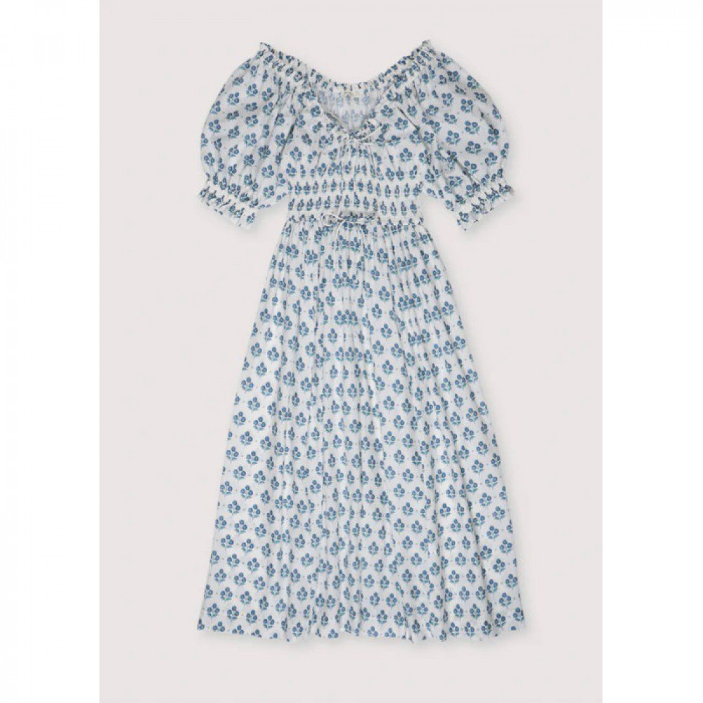 Жіноча сукня Eleni, наш бестселер, тепер представлена в нашому фірмовому принті «Гіацинт», виготовленому зі 100% бавовняного попліну для легкого та дихаючого відчуття. Ця сукня з приємним V-подібним вирізом, еластичними рукавами-буфами та витонченою довжиною міді поєднує в собі елегантність із легким комфортом. Ідеальний для будь-якого випадку, це позачасовий предмет, який втілює жіночність і стиль.