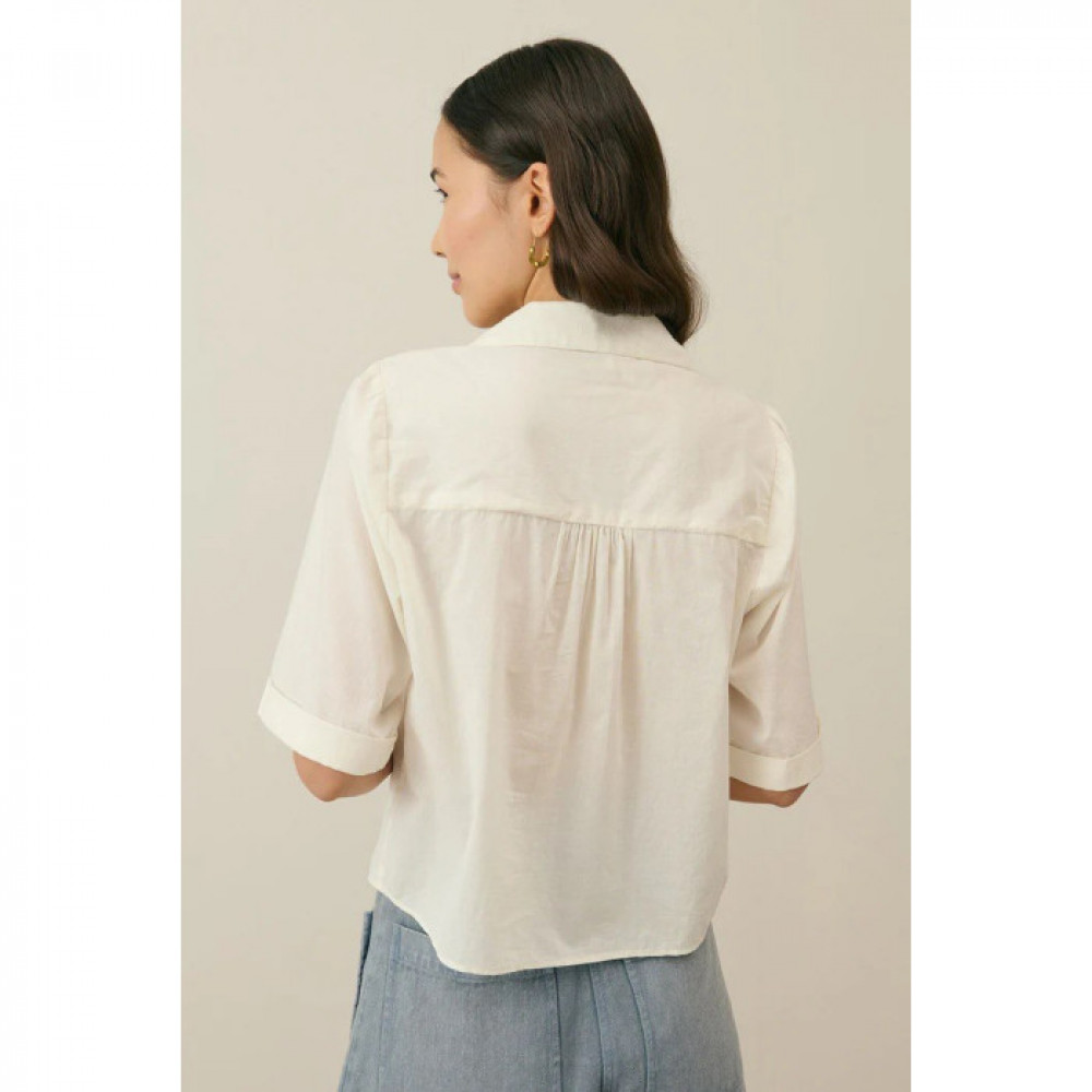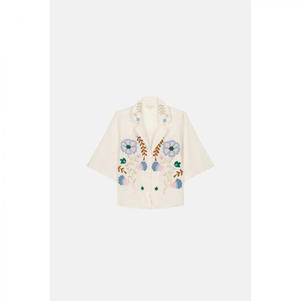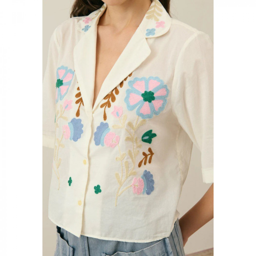 Однотонна бавовняна сорочка з короткими рукавами! Зубчастий комір Великі фактурні вишивки спереду та на комірі