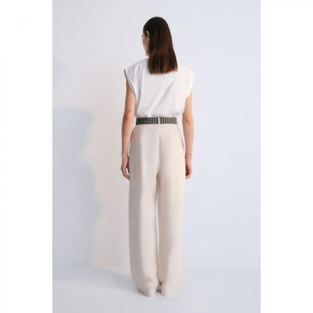 Брюки Eros Pant поєднують елегантність і комфорт у вишуканому, розслабленому силуеті. Виготовлені з м’якої суміші штучного шовку та льону, ці брюки створюють легке та повітряне відчуття, зберігаючи вишуканий вигляд. Плавний дизайн робить їх ідеальними як для повсякденних, так і для більш ошатних випадків, легко переходячи від дня до ночі. Ці штани ідеально підходять для невимушеної елегантності, вони стануть ідеальним вибором для створення вишуканих, невимушених образів Зверніть увагу, що ремінь не входить до штанів.