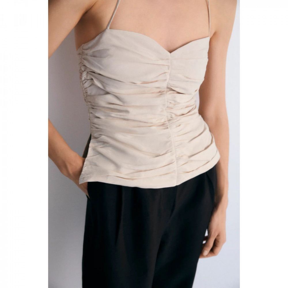 Топ Eros поєднує в собі елегантність і комфорт у гарному дизайні, виготовленому із суміші м’якого льону та віскози. Цей топ із бічними зборками та отвором на подолі для приємного силуету доповнений тонкими регульованими лямками, які зав’язуються навколо шиї для індивідуальної посадки. Бічна невидима блискавка забезпечує бездоганну обробку, що робить його ідеальним доповненням до вашого гардеробу як для повсякденних, так і для більш ошатних випадків. Невибагливий шик, топ Eros є вічним продуктом для витонченого, але невимушеного образу.