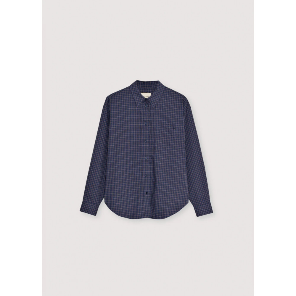 Ця картата сорочка, виготовлена з повітропроникної бавовни, має ґудзики одного тону та передню накладну кишеню, прикрашену тонкою вишивкою бренду. Поєднуйте її з шарфом у тон для створення гармонійного та вишуканого образу.