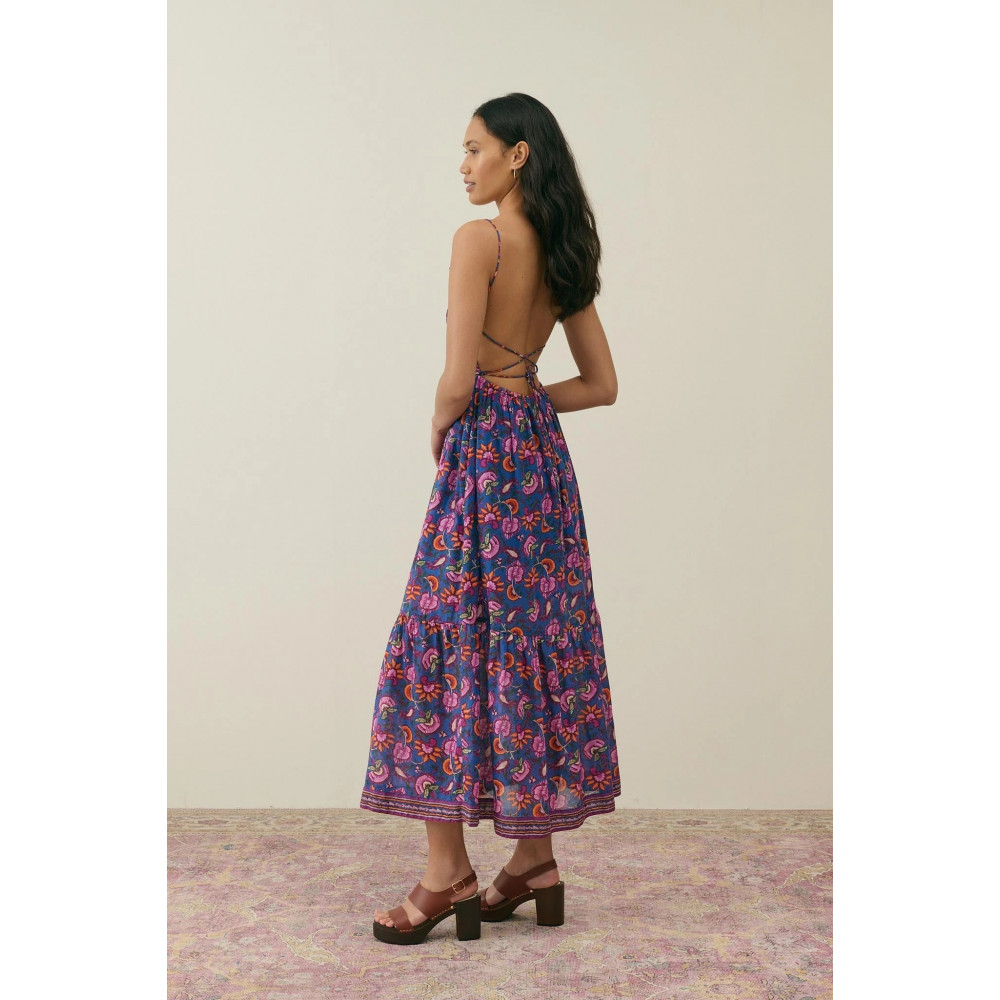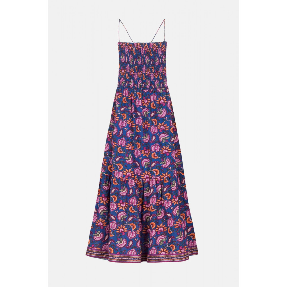 Сукня Жіноча міді з принтом з органічної бавовни. Прямий крій Виріз бандо Регульовані зав'язки ззаду Квітковий принт