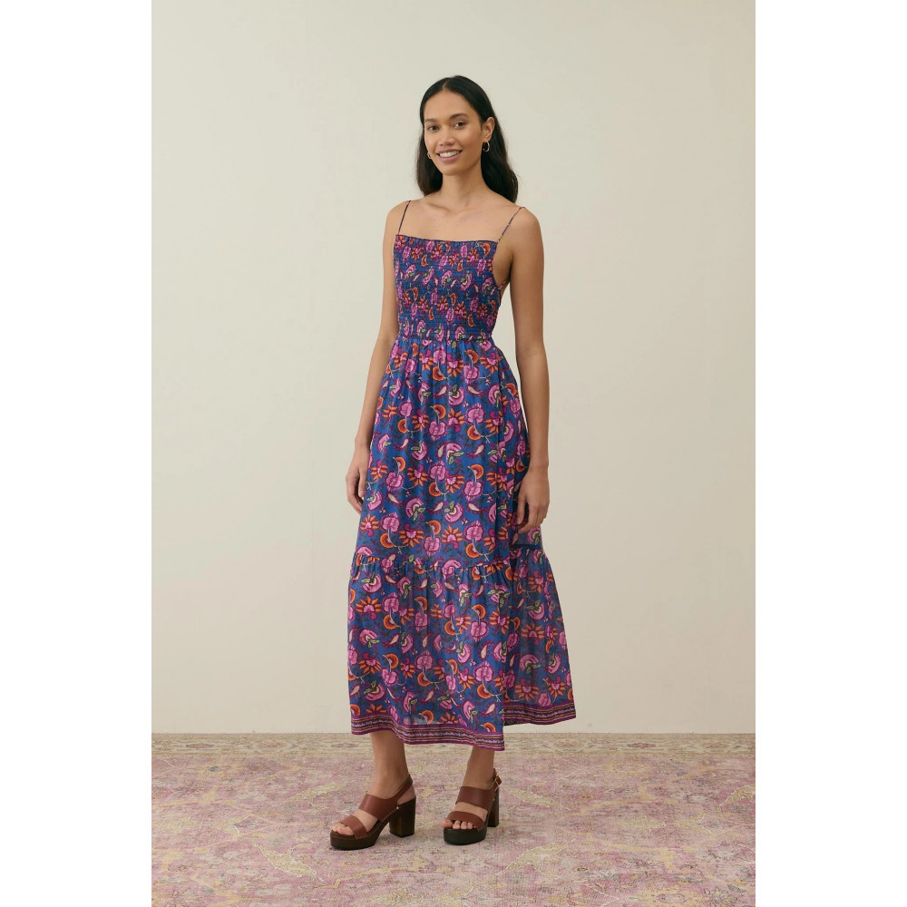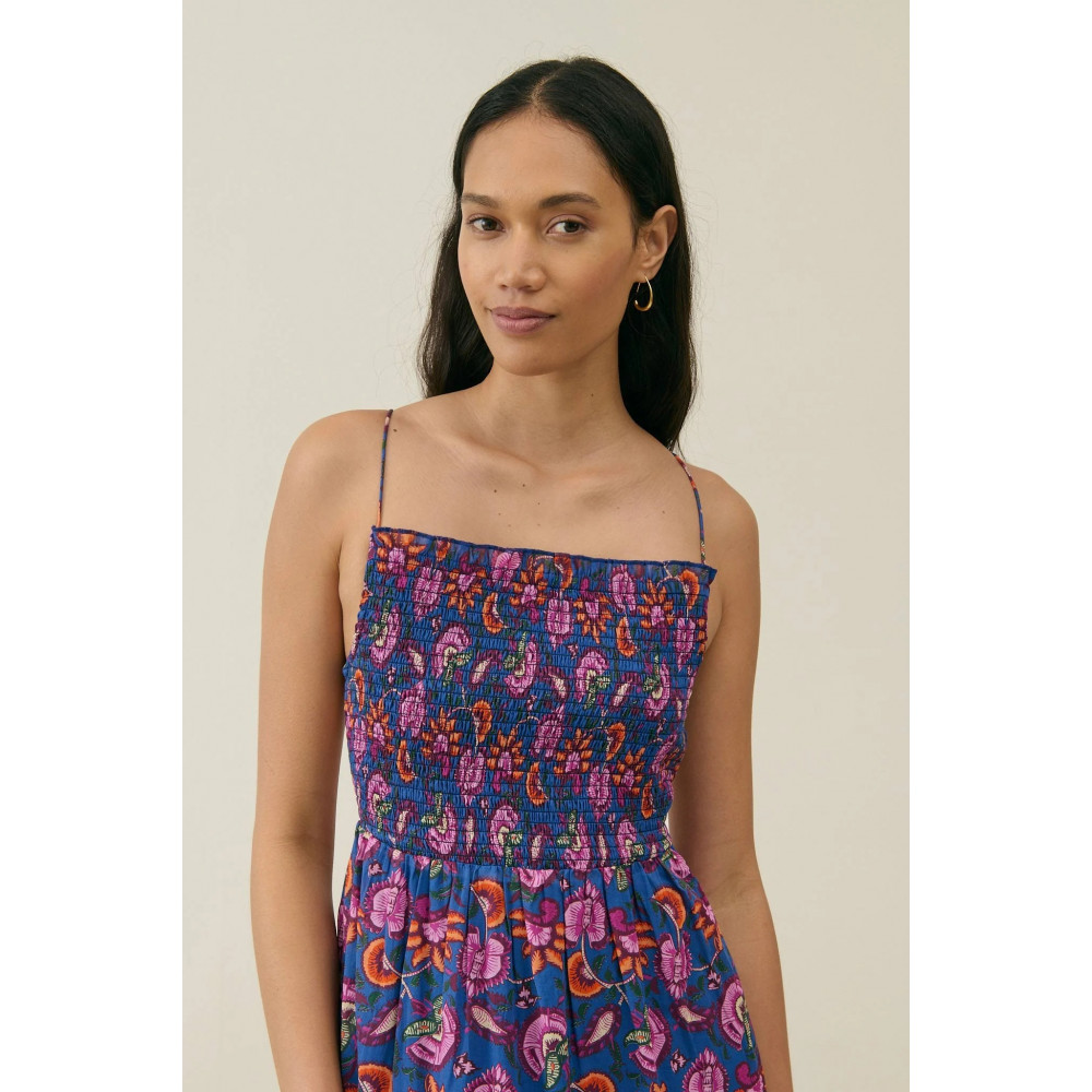 Сукня Жіноча міді з принтом з органічної бавовни. Прямий крій Виріз бандо Регульовані зав'язки ззаду Квітковий принт
