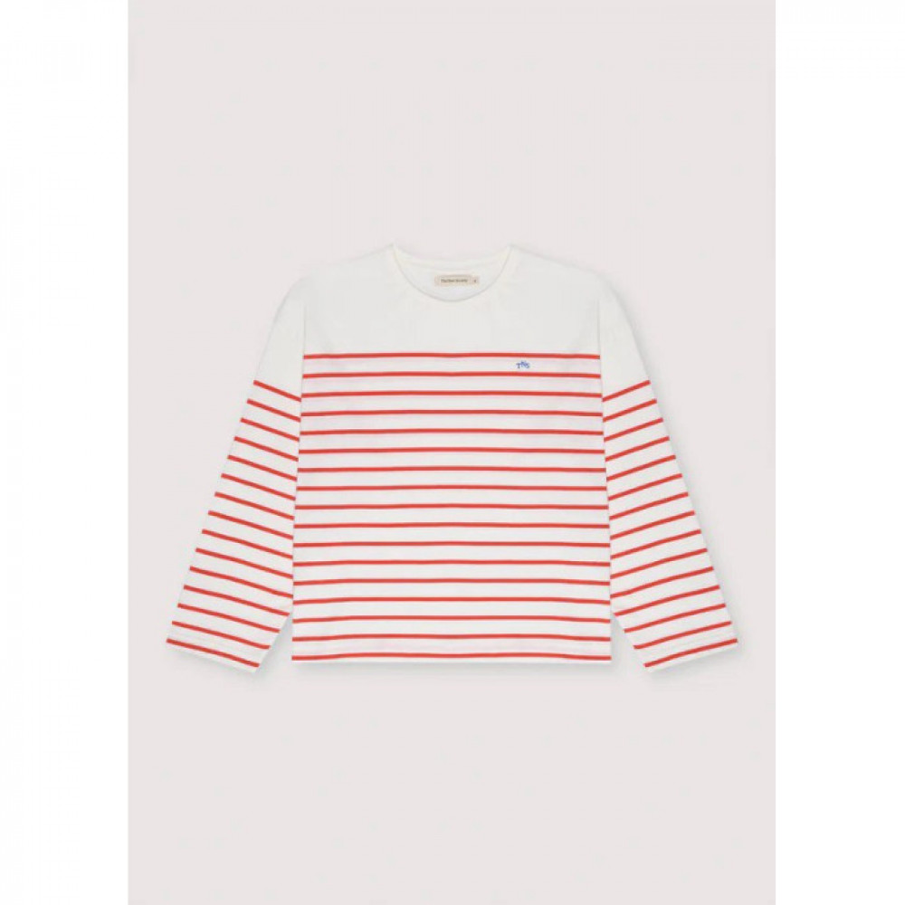 Ця футболка з довгими рукавами має яскравий перець чилі та білі смужки для ефектного, але позачасового образу. Розроблений з невимушеним кроєм і класичним ребристим коміром, він забезпечує комфорт протягом усього дня та легкий стиль. Ідеально підходить для багатошарового використання або носіння окремо, цей універсальний предмет додає свіжості, сучасності будь-якому гардеробу.