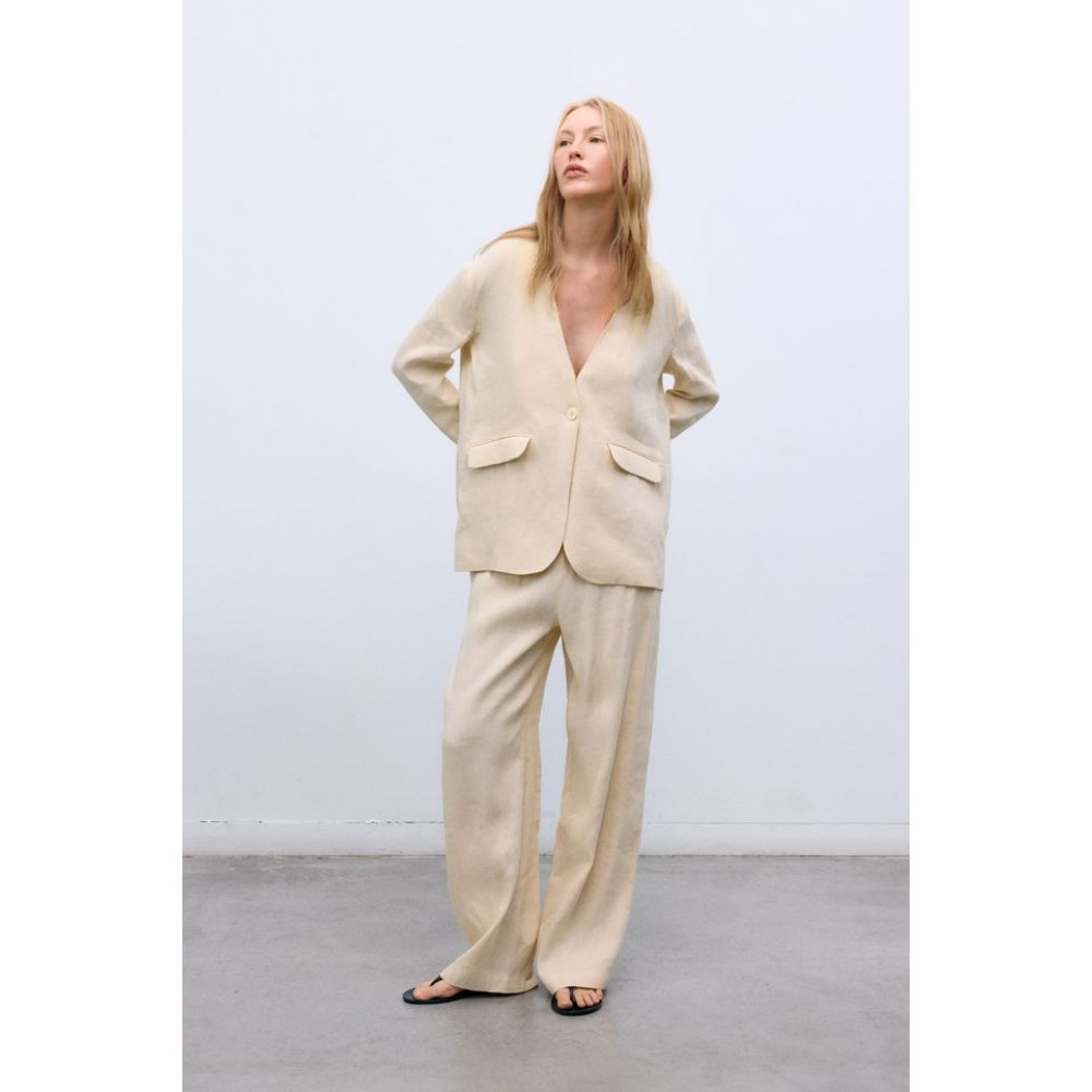 Широкі штани спортивного стилю з льону та віскози з регульованим поясом-зав'язкою та боковими кишенями. Ідеально поєднуються з відповідним блейзером.