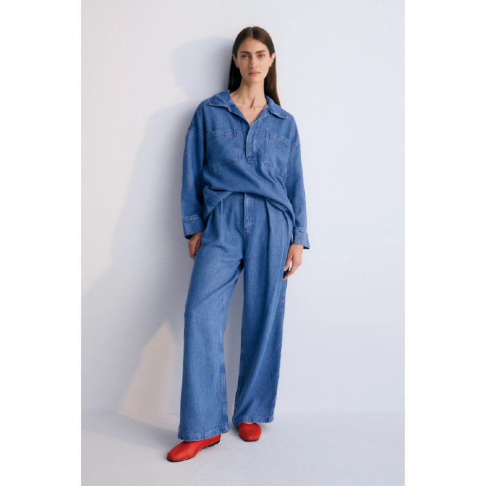 Жіночі штани Micenas є бестселером, тепер переосмисленим у новому стилі випраного деніму. Виготовлений із 100% ліоцелю, він забезпечує м’яке, текуче відчуття з приємним прямим силуетом. Задні кишені мають нашу фірмову жіночу вишивку, що додає виразності. Універсальний і позачасовий предмет, ідеальний для легкої укладки.