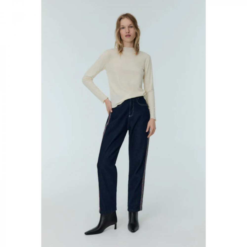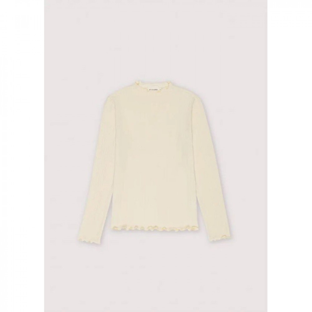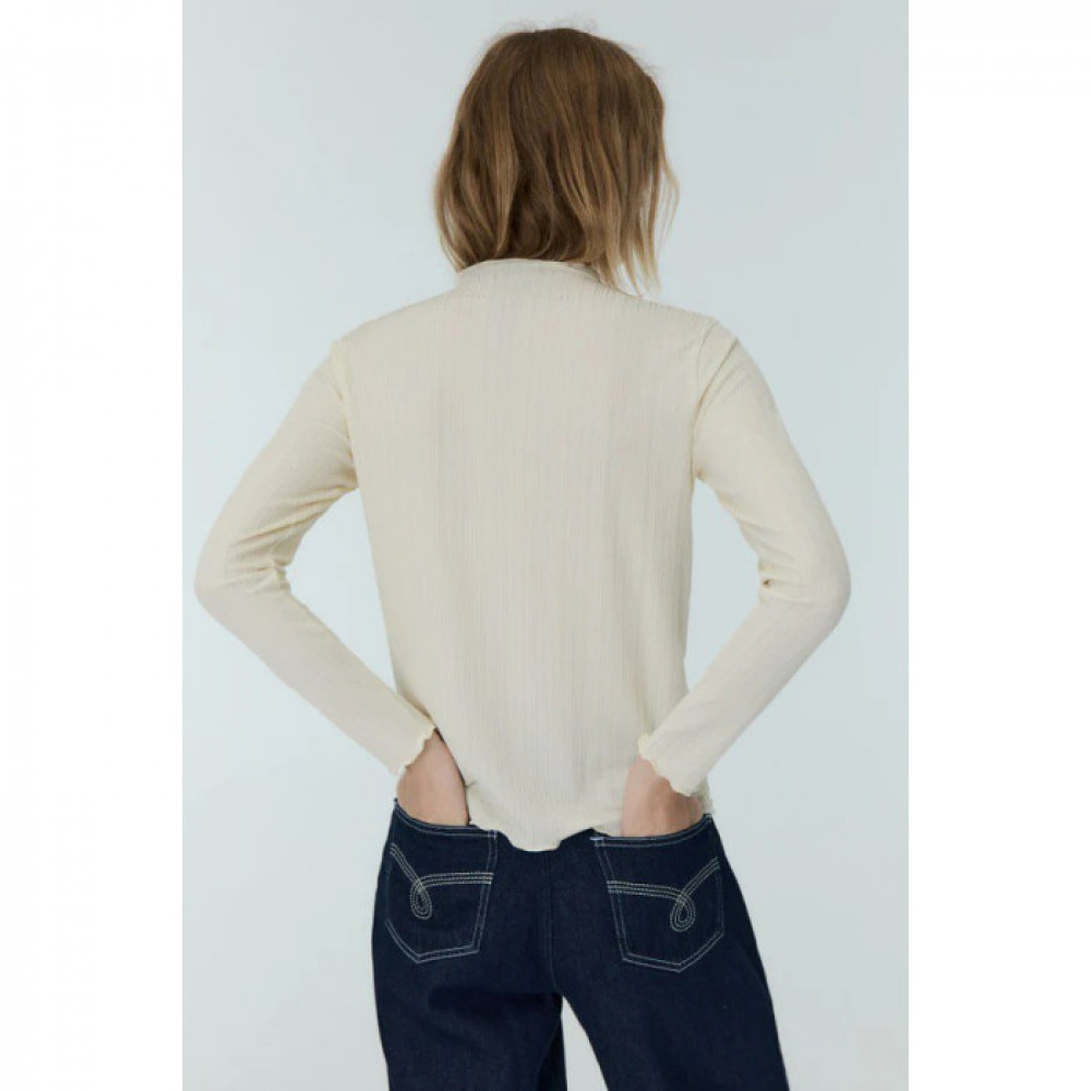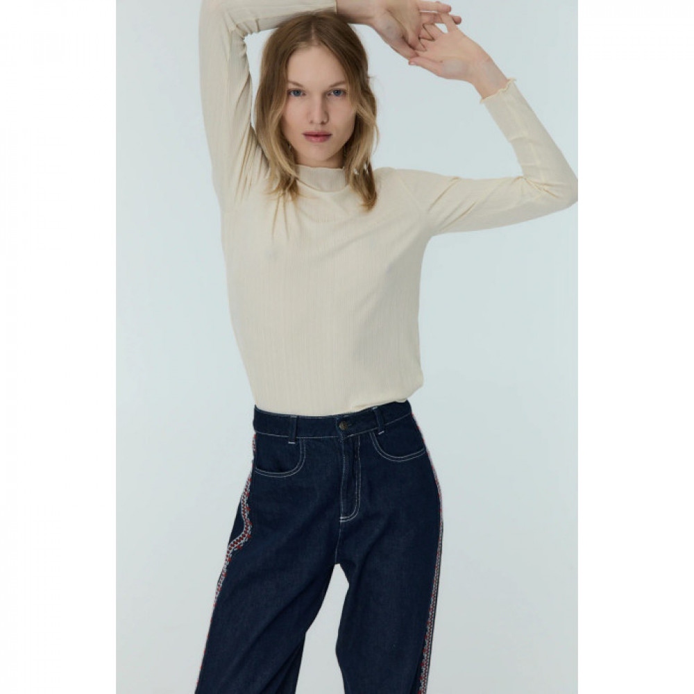 М'яка та еластична футболка з віскози з піднятим коміром і оверлоком у тон.