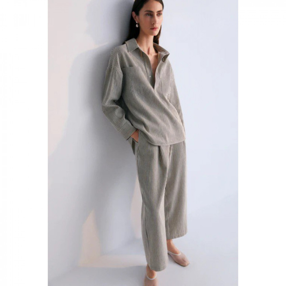 Ці штани мають складки для додаткової структури та кишені з боків і ззаду для практичності. Створені для комфорту та стилю, вони ідеально поєднуються з сорочкою в тон, створюючи універсальний та невимушений шикарний образ, який підходить для будь-якого випадку.