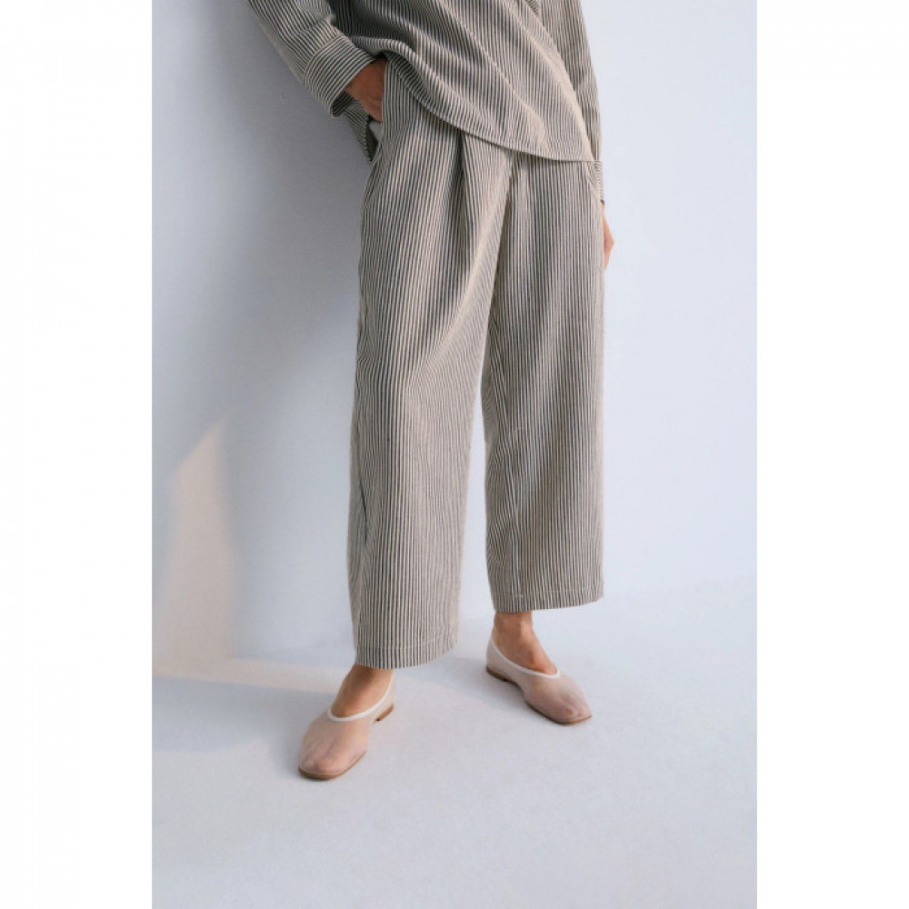 Ці штани мають складки для додаткової структури та кишені з боків і ззаду для практичності. Створені для комфорту та стилю, вони ідеально поєднуються з сорочкою в тон, створюючи універсальний та невимушений шикарний образ, який підходить для будь-якого випадку.