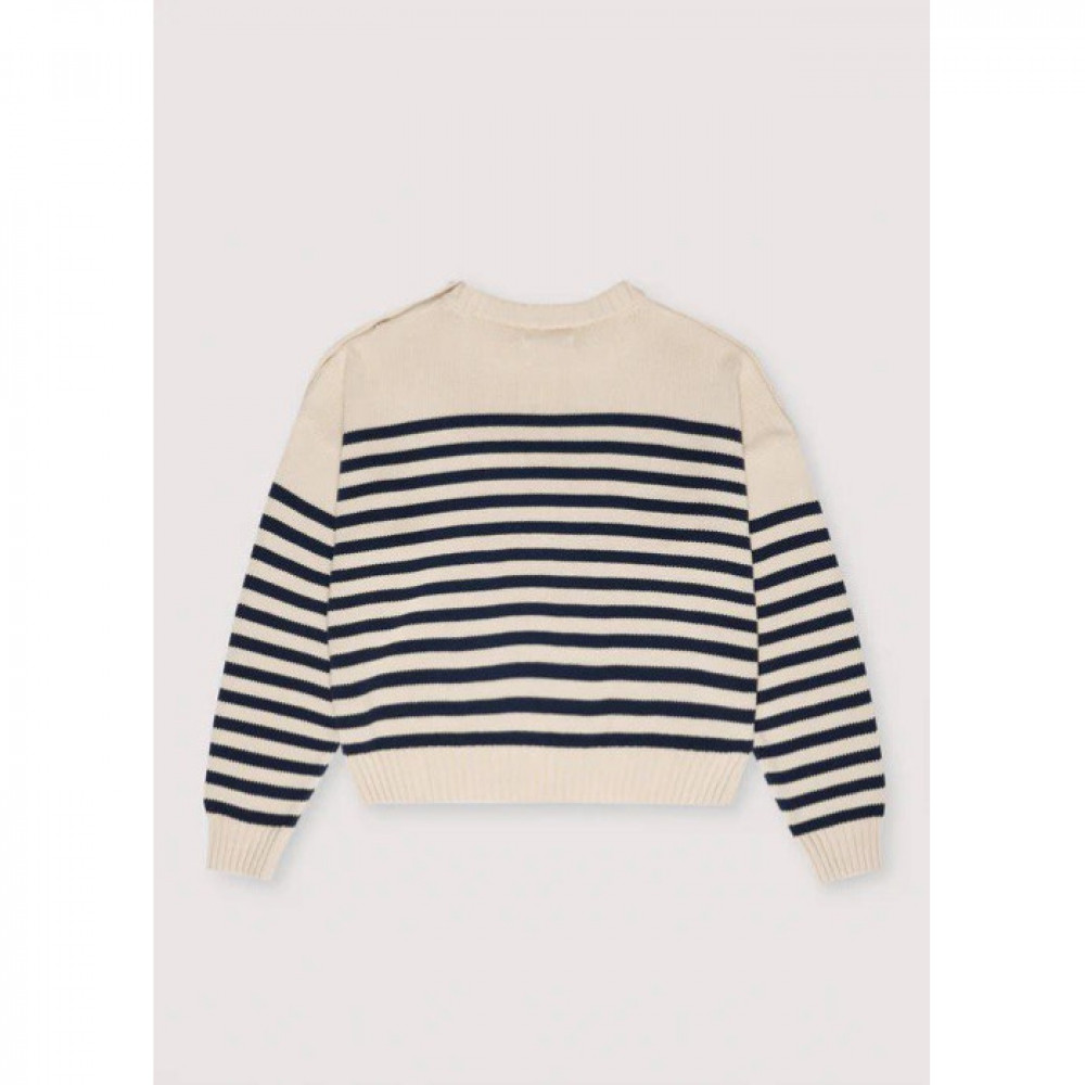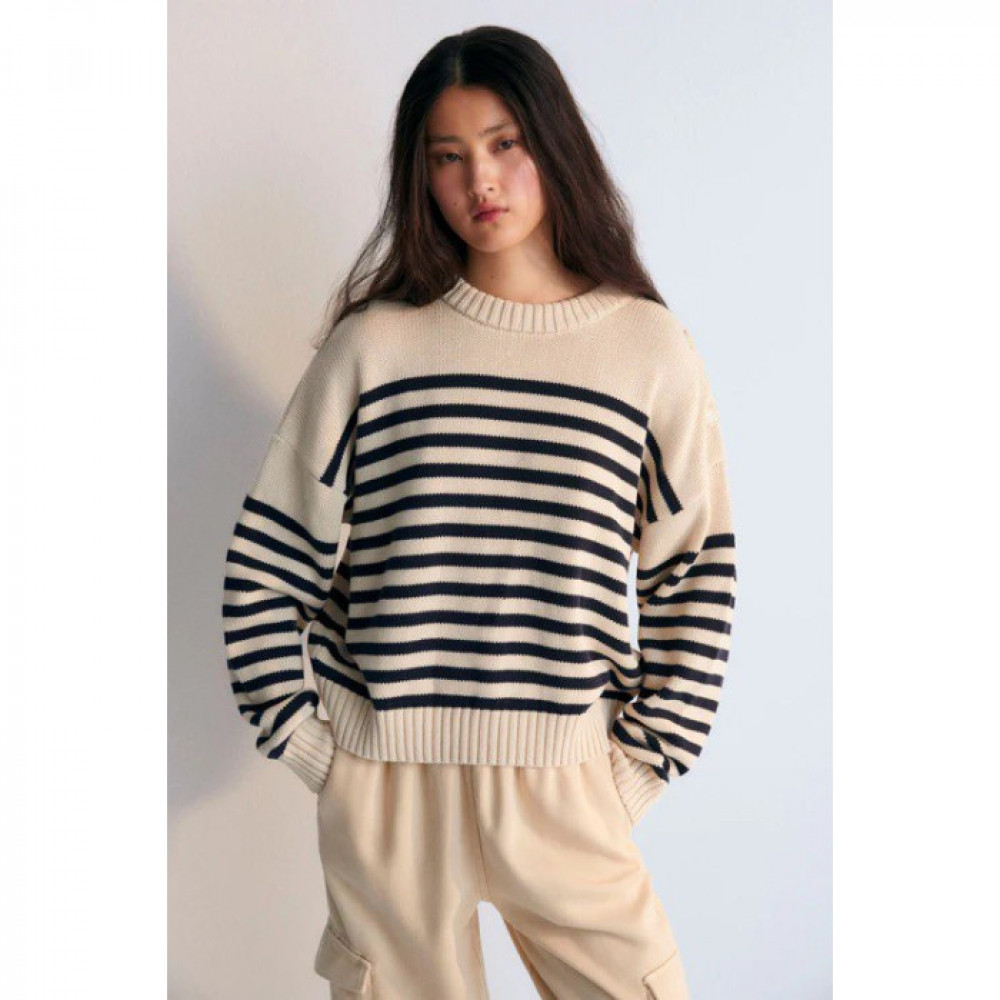 Додайте морський відтінок у свій гардероб за допомогою нашого смугастого светра в морському стилі, виготовленого зі 100% органічної бавовни для м’якого дихаючого відчуття. Цей светр із класичними смужками та ребристим вирізом, манжетами та подолом поєднує позачасовий стиль із сучасними деталями. Виразні золоті ґудзики на плечі підкреслюють образ, додаючи нотки вишуканості повсякденному дизайну. Зроблений у Португалії, цей виріб пропонує ідеальний баланс комфорту та стилю. Це універсальне доповнення до вашої колекції трикотажних виробів, яке ідеально підходить для багатошаровості або носіння наодинці, яке обов’язково приверне увагу незалежно від того, перебуваєте ви на узбережжі чи в місті.