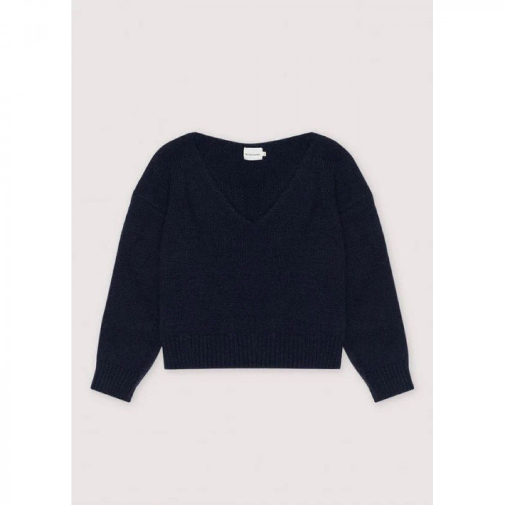 Джемпер з м’якою обробкою, V-подібним вирізом із машинно обробленими краями, спущеними рукавами та ребристими манжетами та подолом.