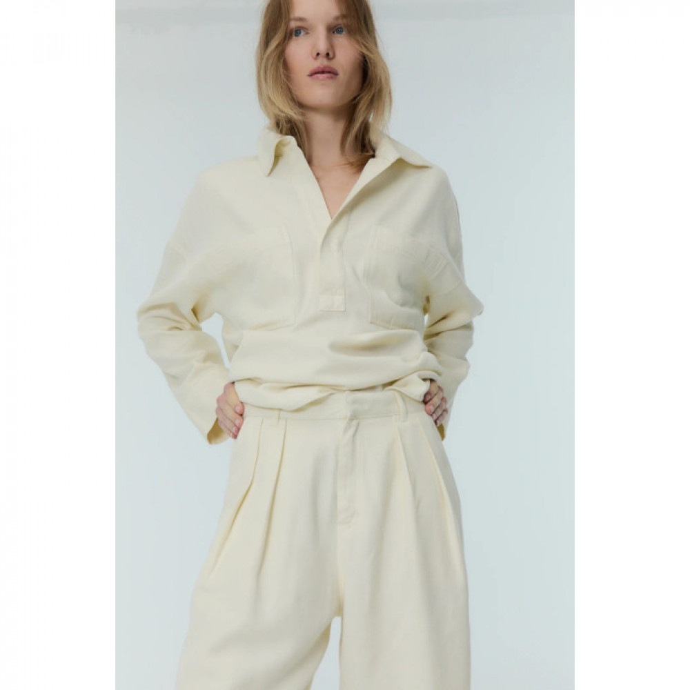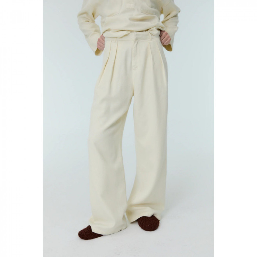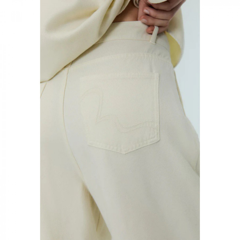 Прямі довгі штани зі складками і двома накладними кишенями ззаду.