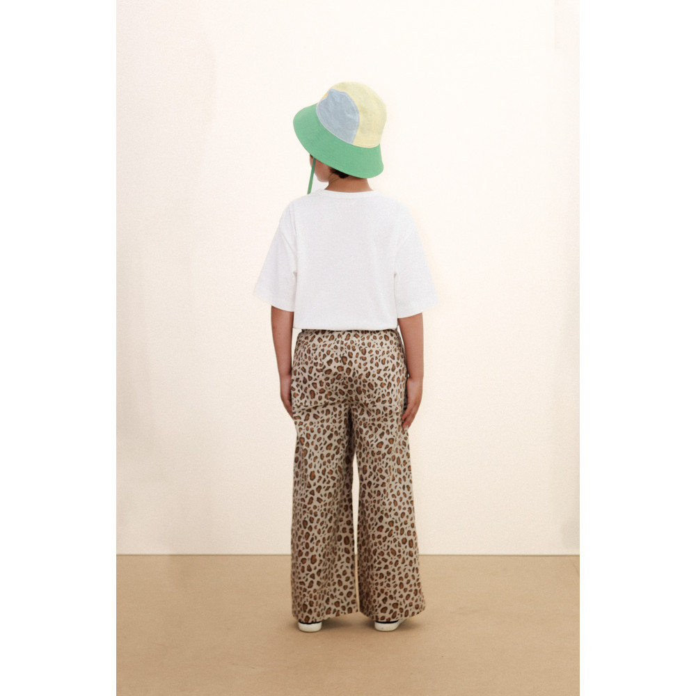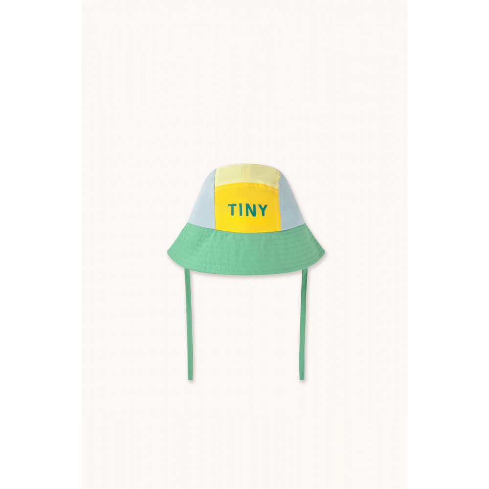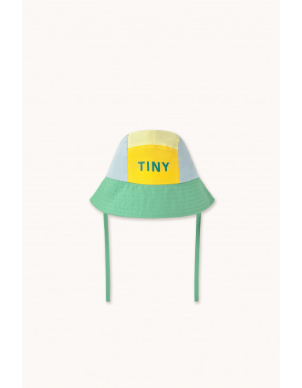 Вічний стиль з унікальною родзинкою. Цей капелюх-відро вирізняється жовто-синьо-смарагдовим кольоровим дизайном, виготовлений з м'якої м'ятої тканини та оздоблений тканинними зав'язками в тон для регулювання. Невеликий логотип спереду додає фірмового штриха Tiny. Ідеально підходить для сонячних днів, поєднуючи класичний стиль з повсякденною практичністю.