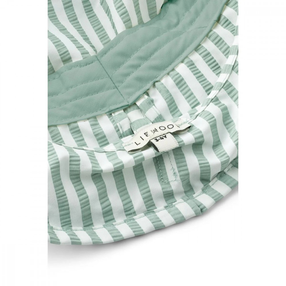 Милий та практичний сонцезахисний капелюх для маленьких дітей з подовженим клапаном на шиї для найкращого захисту від сонця під час ігор на вулиці. Сонцезахисний капелюх DAMONA виготовлений з легкого переробленого поліестеру, що робить його ідеальним вибором для сімейних прогулянок. Сонцезахисний капелюх-відро з класичними смужками та захистом від UV40+ Має довший козирок на шиї, який можна скласти та заховати всередині козирка Виготовлений з легкої тканини, сертифікованої GRS Ремінець для підборіддя з м’яким силіконовим стопором Ідеально підходить для теплого літнього дня на пляжі або біля басейну