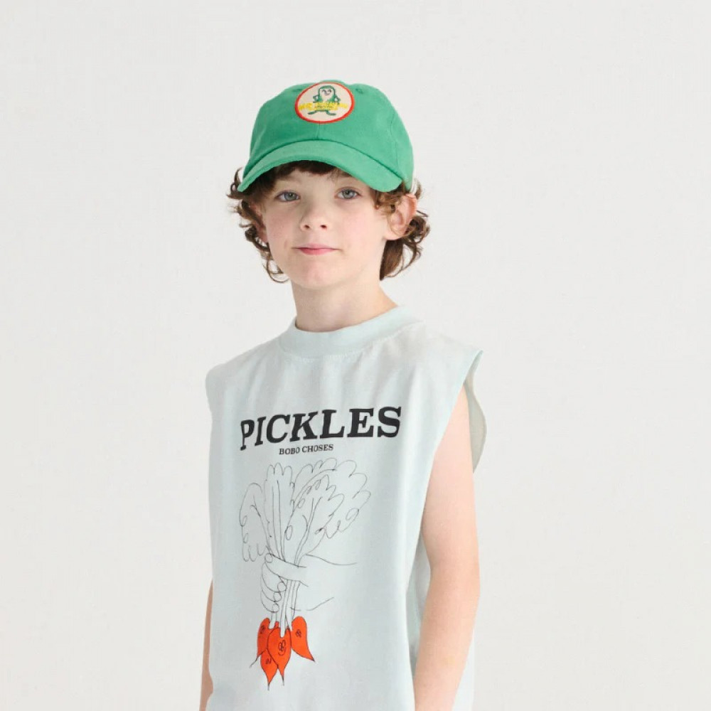 Нам подобається Містер Піклз! Весела зелена кепка Bobo Choses з нашивкою «Містер Піклз» та регульованим ремінцем на спині.