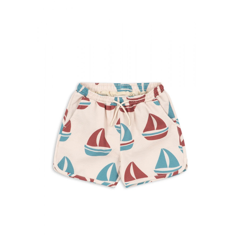 М'які плавки, виготовлені з швидковисихаючого переробленого поліестеру, сертифікованого GRS. Класичного силуету з широким еластичним поясом та регульованим шнурком.