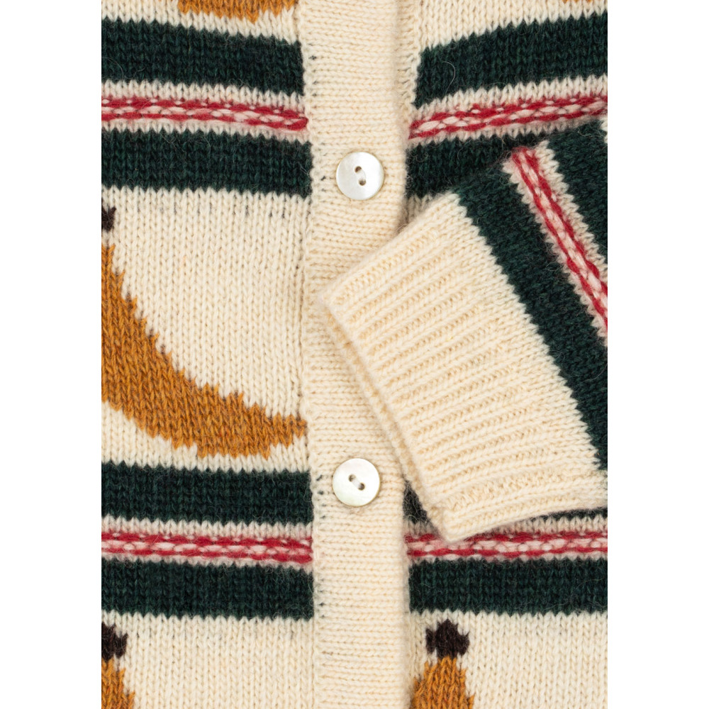 Теплий в'язаний кардиган з пухкої суміші вовни. Класичний дизайн з круглим вирізом, ребристими краями та перламутровими ґудзиками спереду.