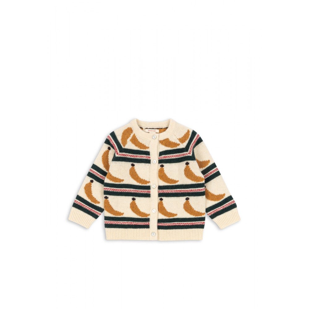 Теплий в'язаний кардиган з пухкої суміші вовни. Класичний дизайн з круглим вирізом, ребристими краями та перламутровими ґудзиками спереду.