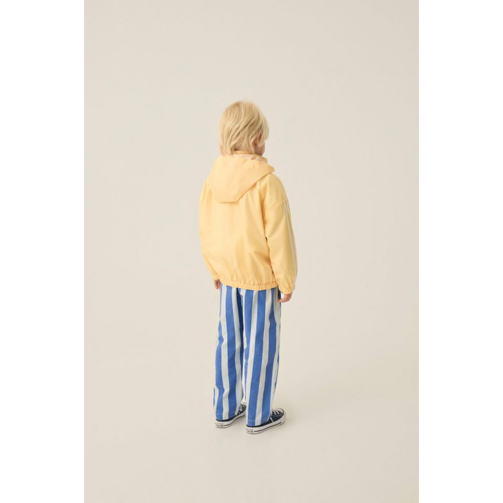Універсальна куртка, ідеальна для прохолодних літніх днів. Жовтого кольору із зеленими деталями. Виготовлена з переробленого поліестеру та застібається спереду на блискавку. Знімний капюшон.