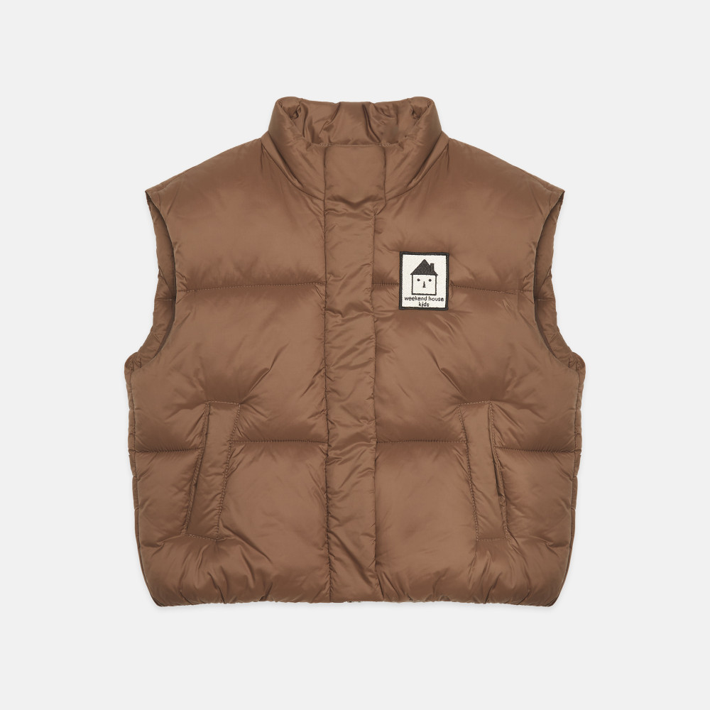 Дитячий жилет Brown Puffer. Можна прати в пральній машині за температури до 30º / Прати з речами схожих кольорів / Не відбілювати Зроблено в Іспанії.