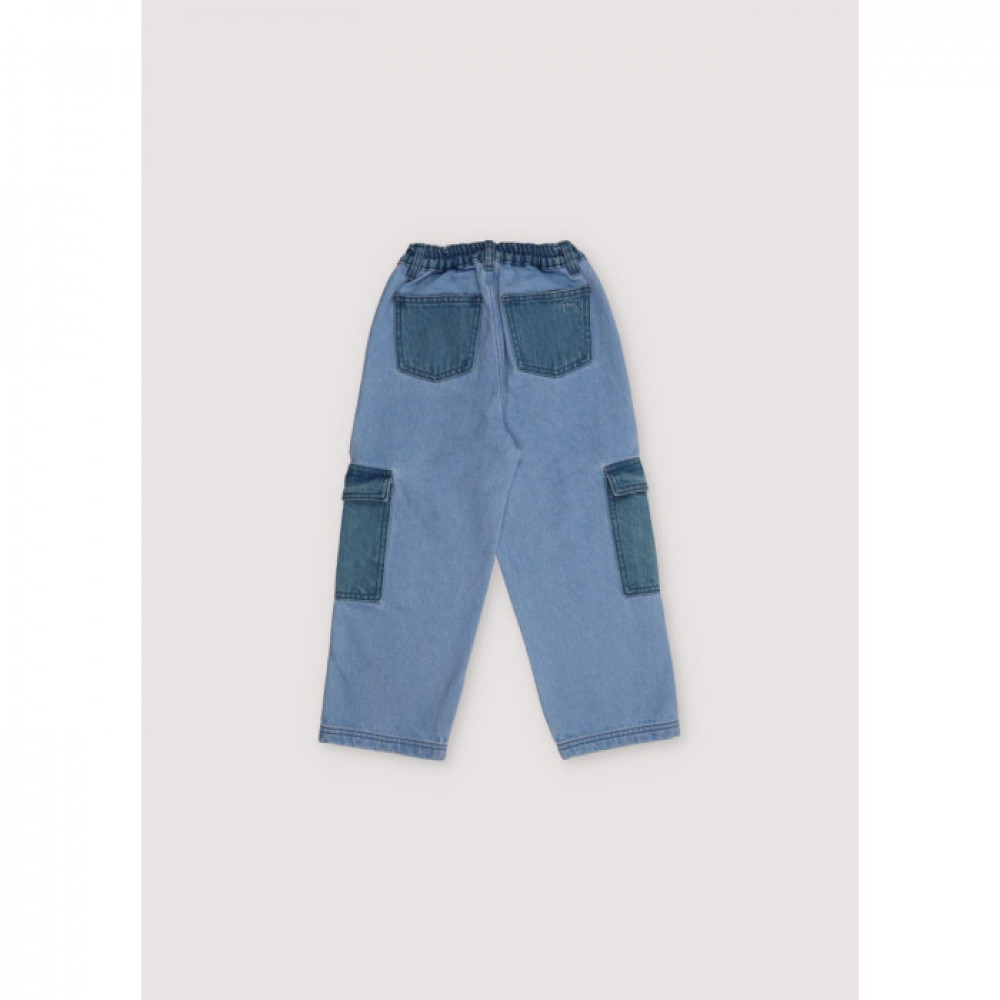 Джинси вільного крою з великими накладними кишенями контрасного кольору.