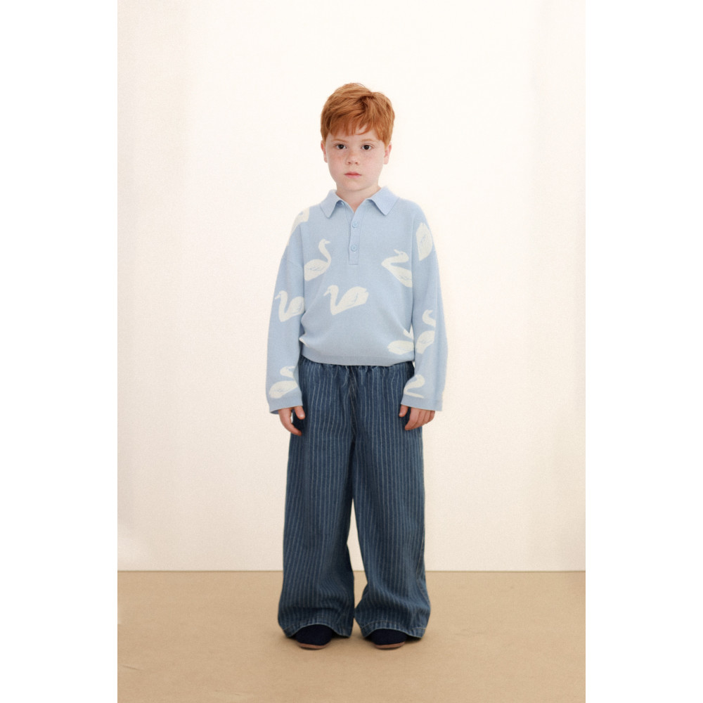 Ці джинсові штани з принтом у формі лазерних смужок поєднують комфорт і стиль у вільному дизайні. Вони мають злегка роздутий силует з боків, зібраний еластичний пояс, передні внутрішні кишені та задні накладні кишені, що забезпечує комфортну та практичну посадку. Лазерний принт додає їм сучасного та самобутнього вигляду.
