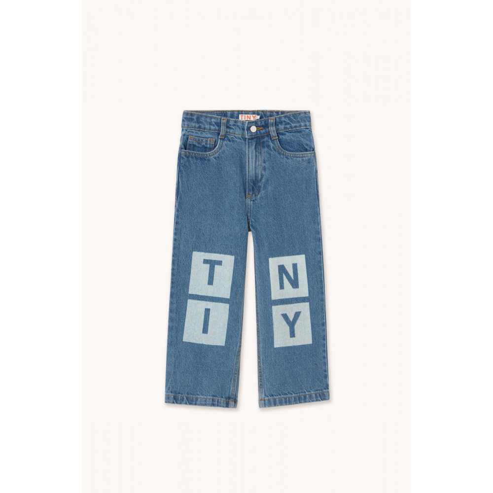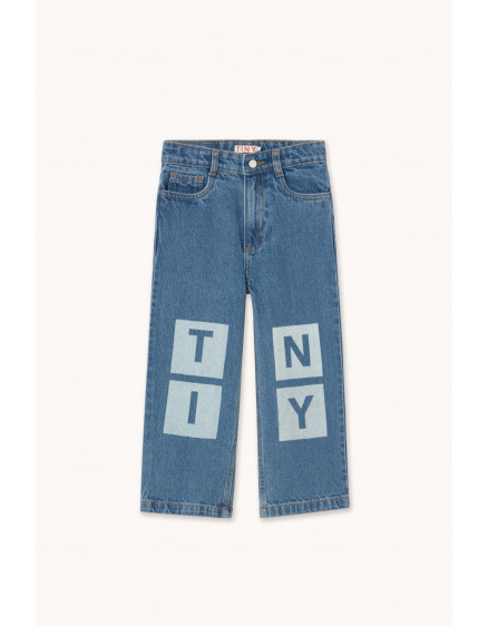 Ці джинсові штани класичного крою виготовлені з міцної 100% бавовняної тканини. Завдяки прямому силуету, регульованому поясу та застібці на кнопки, вони забезпечують комфортну та практичну посадку. Контрастна строчка додає свіжості та особливих рис, а лазерний мотив TINY на колінах створює цікавий та сучасний вигляд.