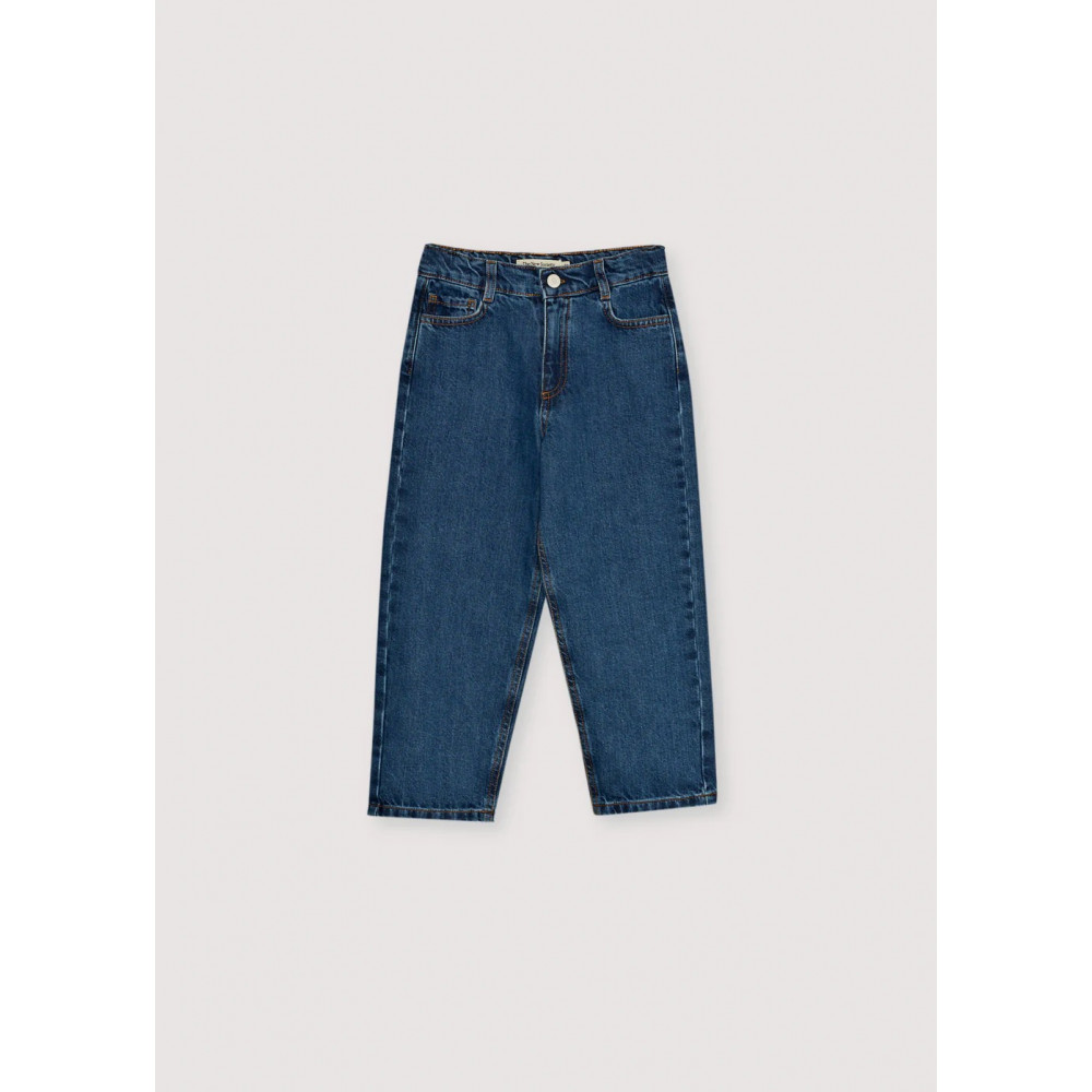 Наш класичний базовий денім, розроблений для щоденного комфорту. Ця пара стандартного крою має регульований еластичний пояс з внутрішньої сторони для ідеальної посадки та фірмову вишивку на задній кишені для фірмового штриха. Зріст моделі 117 см, розмір 6Y. Зроблено в Португалії.