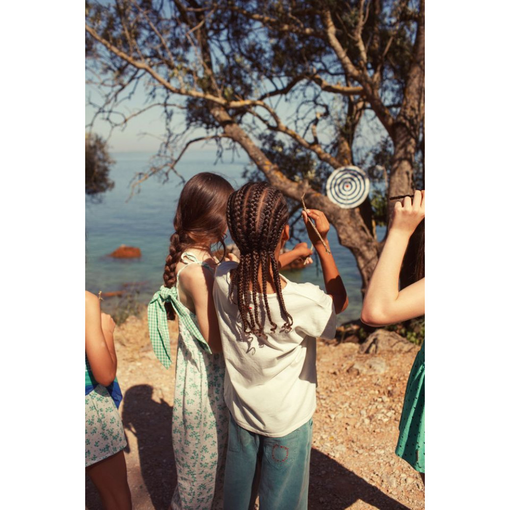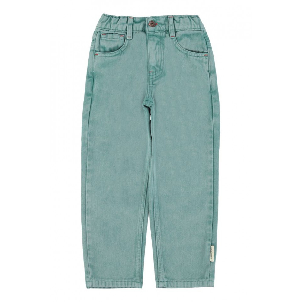 Унісекс джинсові штани з пранням та регульованою талією. Декоровані червоною вишивкою логотипу на одній задній кишені. Прати в холодній воді (макс. 30ºC). Не відбілювати. Сушити при нормальній температурі, низькій. Прасувати при середній температурі (макс. 150°C). Хімчистка будь-яким розчинником, окрім трихлоретилену. Прати навиворіт.