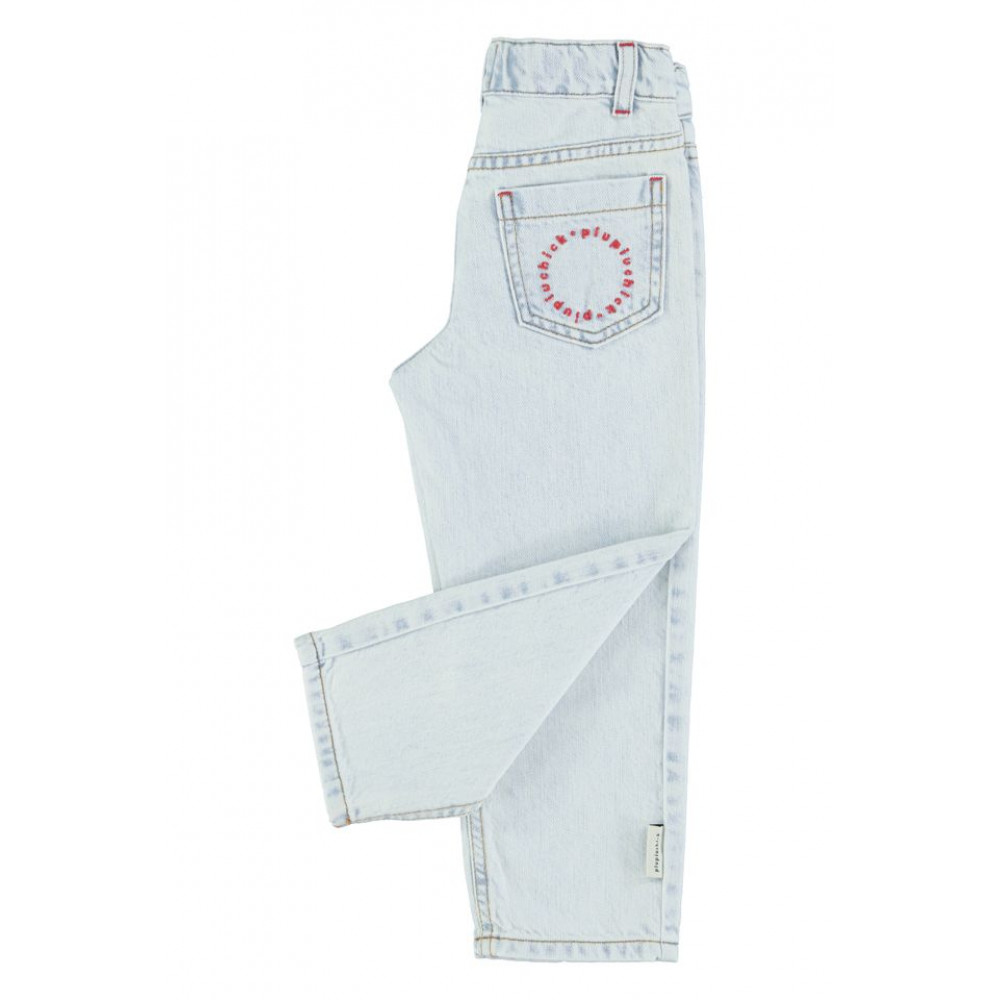 Унісекс штани з деніму з регульованою талією. Декор з червоною вишивкою логотипу на одній задній кишені. Прати в холодній воді (макс. 30ºC). Не відбілювати. Сушити при нормальній температурі, при низькій температурі. Прасувати в прохолодній воді (макс. 110ºC). Не піддавати хімічному чищенню. Вологе чищення. Прати навиворіт. Прати окремо. Вплив сонця або інтенсивного світла може призвести до зміни кольору.