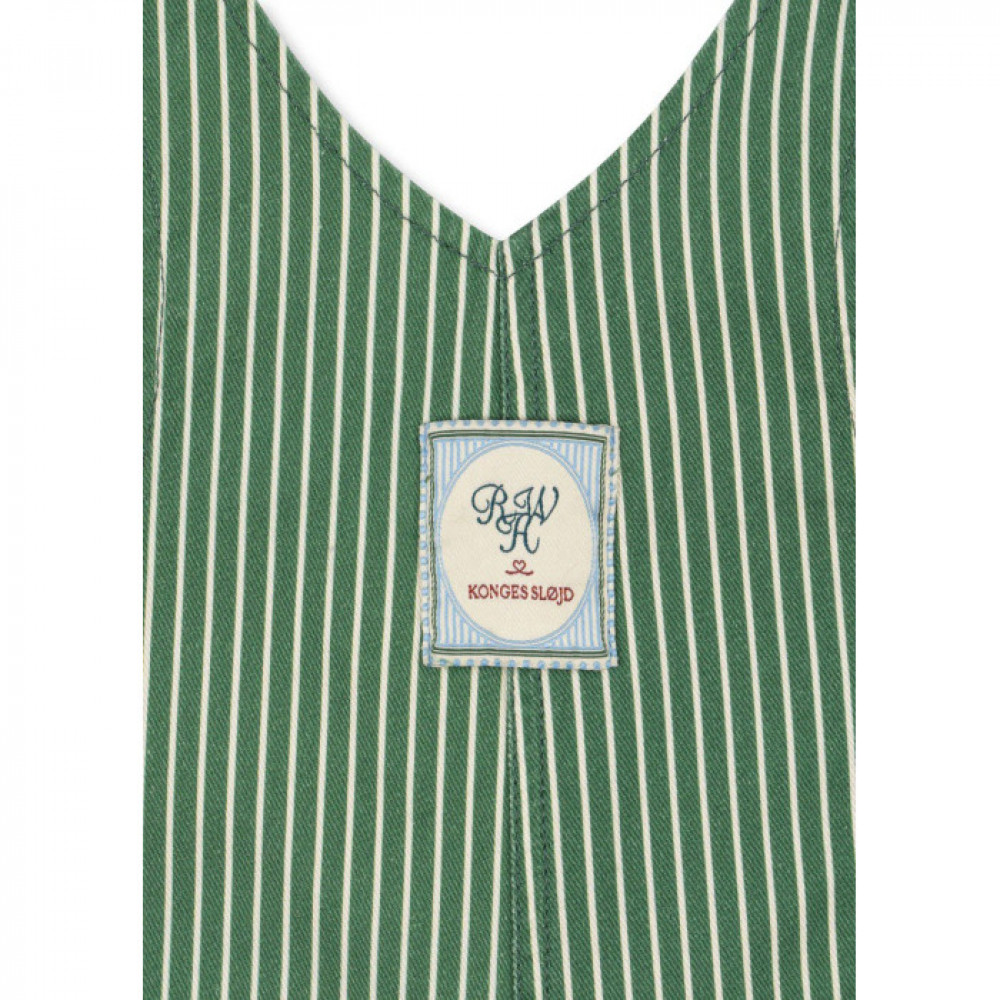 Комбінезон Jack виготовлений з м'якої саржі з органічної бавовни. Розроблений у зручному вільному крої, який має бути трохи мішкуватим, і класичними ремінцями з пряжками, які закриваються спереду. Прикрашений принтом карткової гри «Червовий валет» спереду, присвячений сину Розі, Джеку.