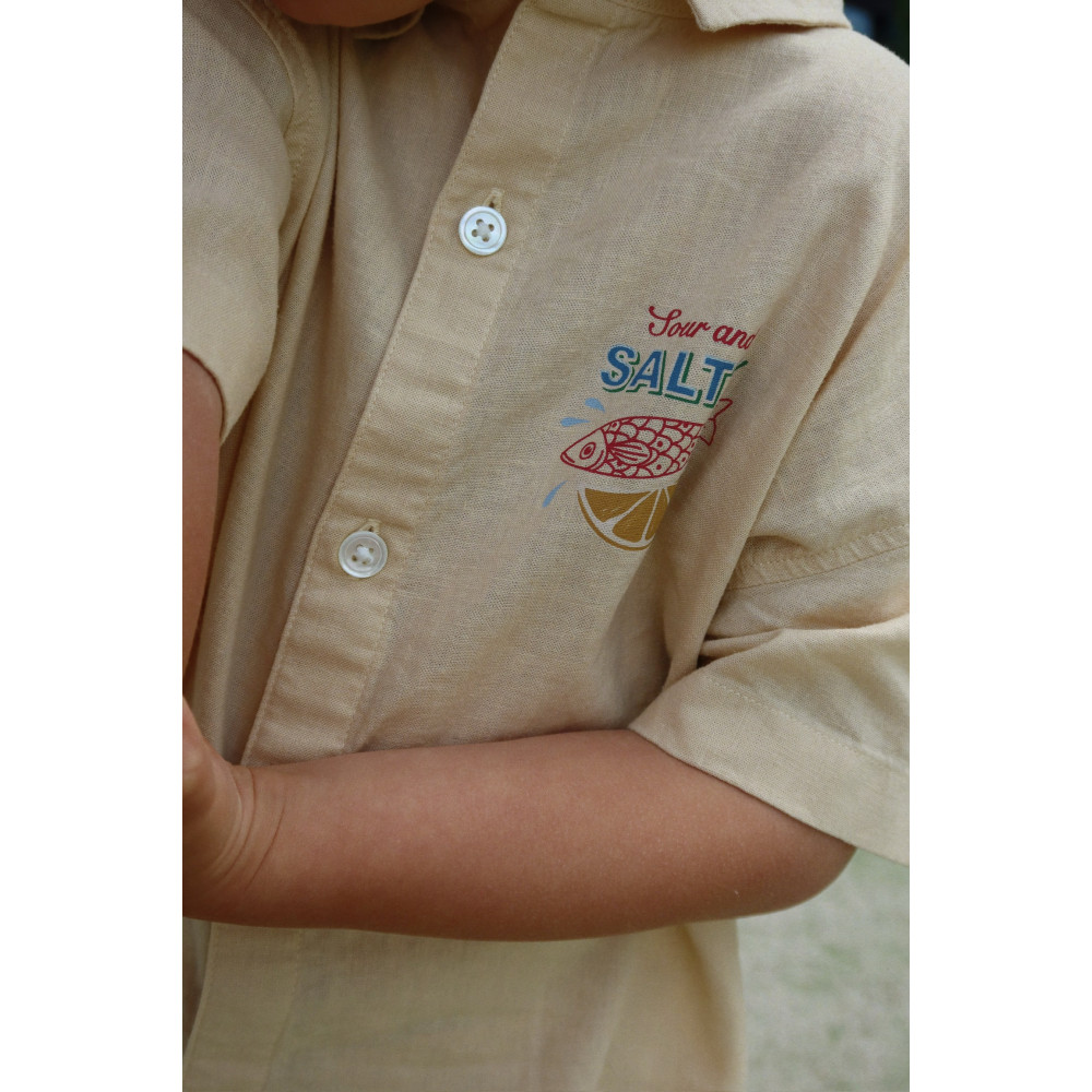 Сорочка з короткими рукавами класичного прямого силуету. Виготовлена з повітропроникної суміші льону, яка забезпечує легкість і комфорт. Поєднуйте її з шортами Franzen у тон та капелюхом-відром для ідеального літнього образу.
