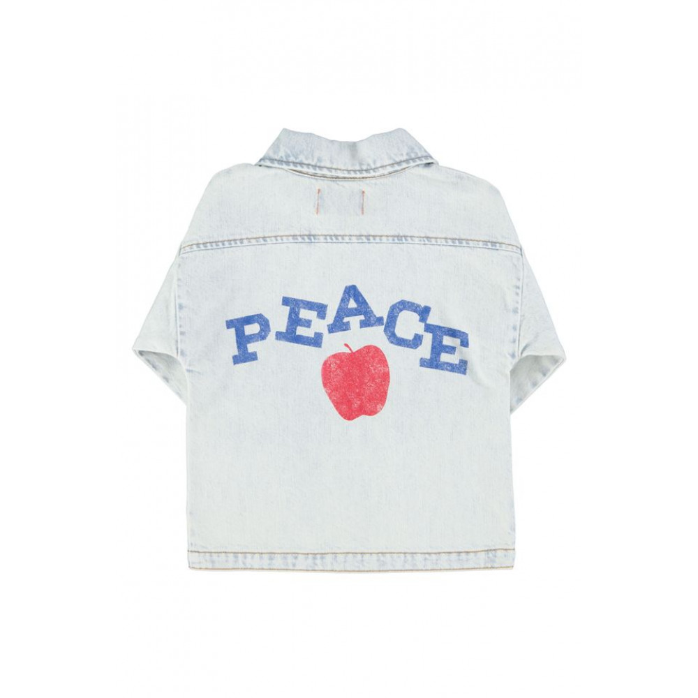 Куртка-сорочка з коміром-сорочкою, дерев'яними ґудзиками та накладними передніми кишенями, одна з яких оздоблена шкіряним логотипом та принтом "Peace" на спині. Прати в холодній воді (макс. 30ºC). Не відбілювати. Сушити при нормальній температурі, при низькій температурі. Прасувати в прохолодній воді (макс. 110ºC). Не піддавати хімічному чищенню. Вологе чищення. Прати навиворіт. Прати окремо. Вплив сонця або інтенсивного світла може призвести до зміни кольору.