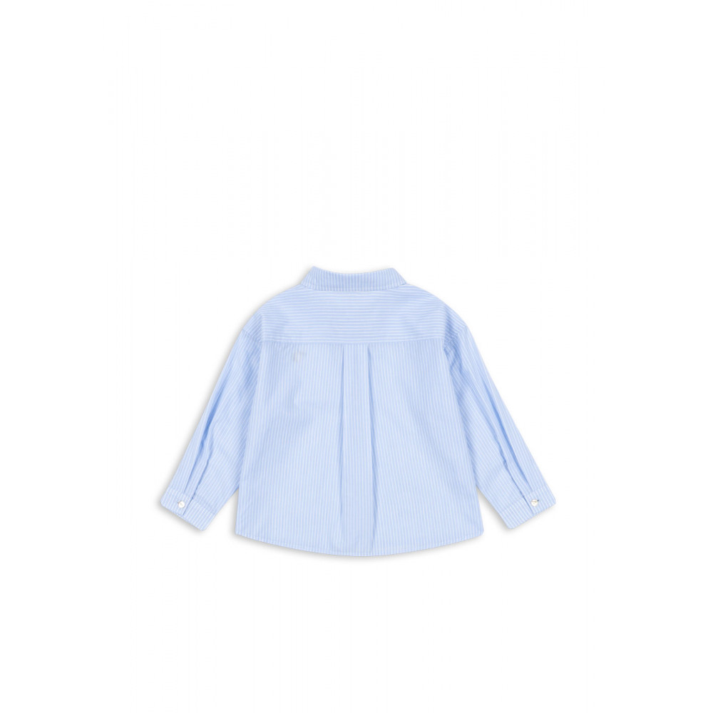 Класична сорочка з м'якого та легкого попліну з органічної бавовни. Розроблена з такими класичними елементами, як звичайний комір, вузькі манжети та коротка застібка на спинку. Носіть відкриту з м'якою футболкою під нею або застебнуту з шортами для ідеального літнього образу.