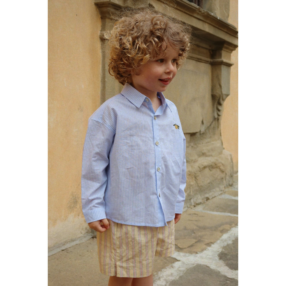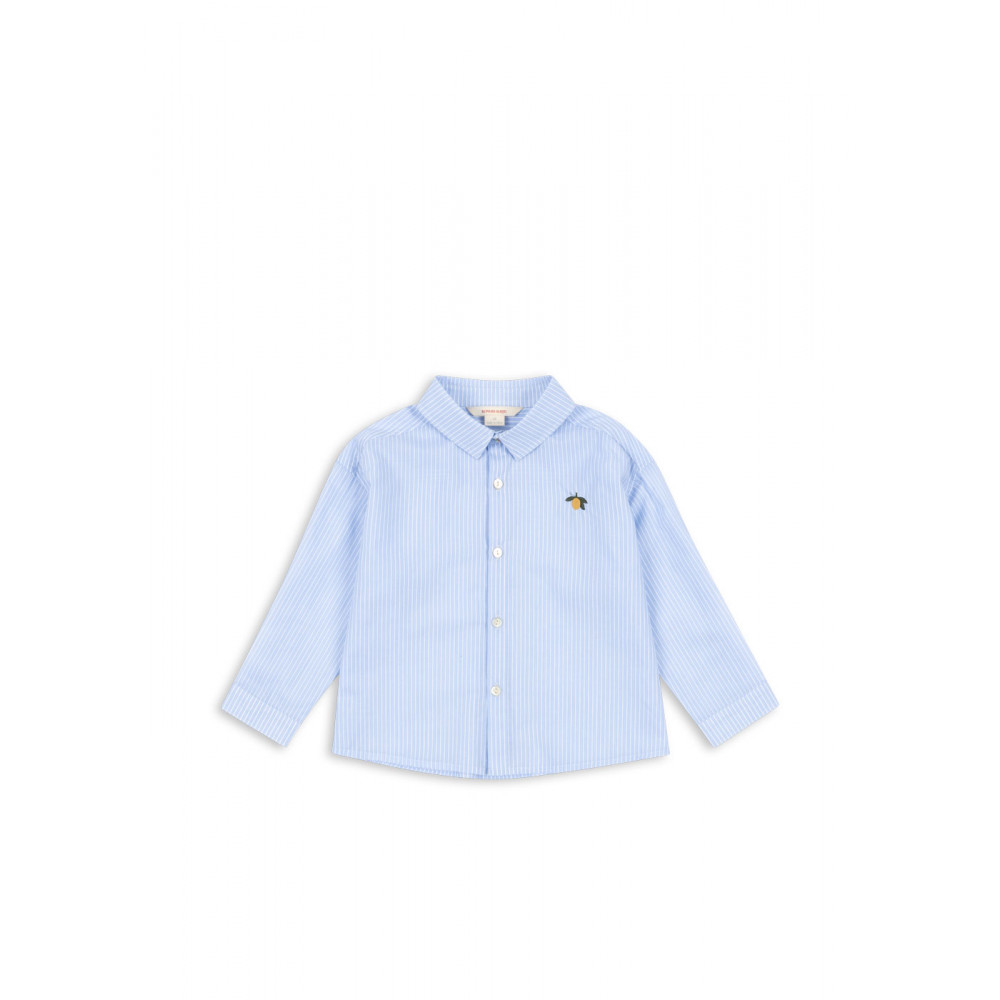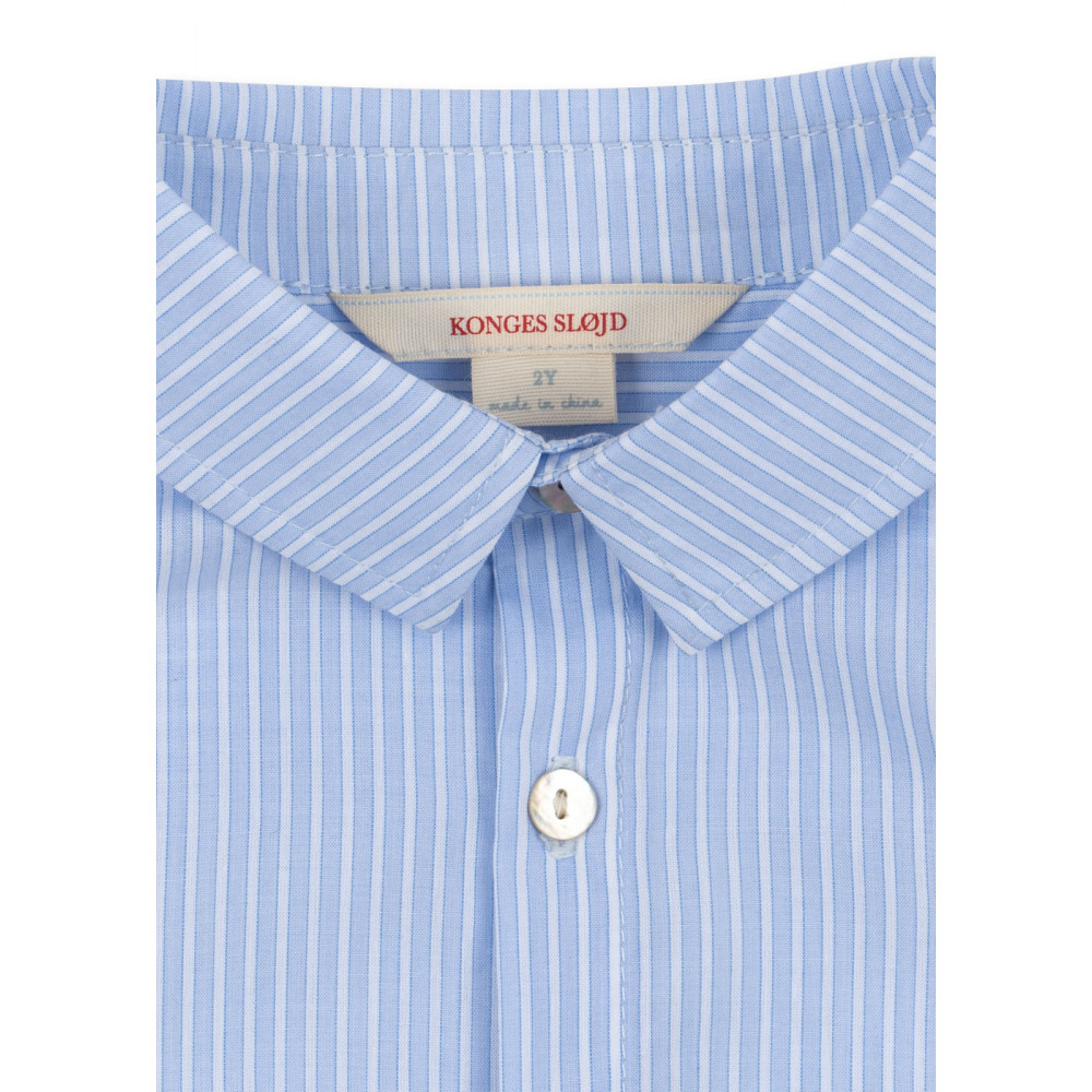 Класична сорочка з м'якого та легкого попліну з органічної бавовни. Розроблена з такими класичними елементами, як звичайний комір, вузькі манжети та коротка застібка на спинку. Носіть відкриту з м'якою футболкою під нею або застебнуту з шортами для ідеального літнього образу.