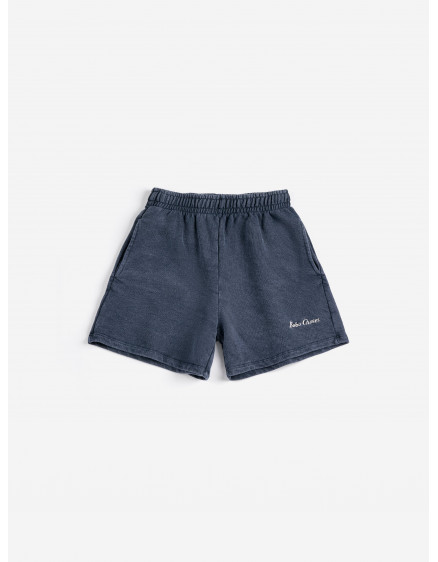 Темно-сині шорти. З еластичним поясом, вишивкою, регульованим шнурком, довжиною вище коліна, накладною кишенею, кишенею в шві та вільним кроєм. Виготовлено в Іспанії.