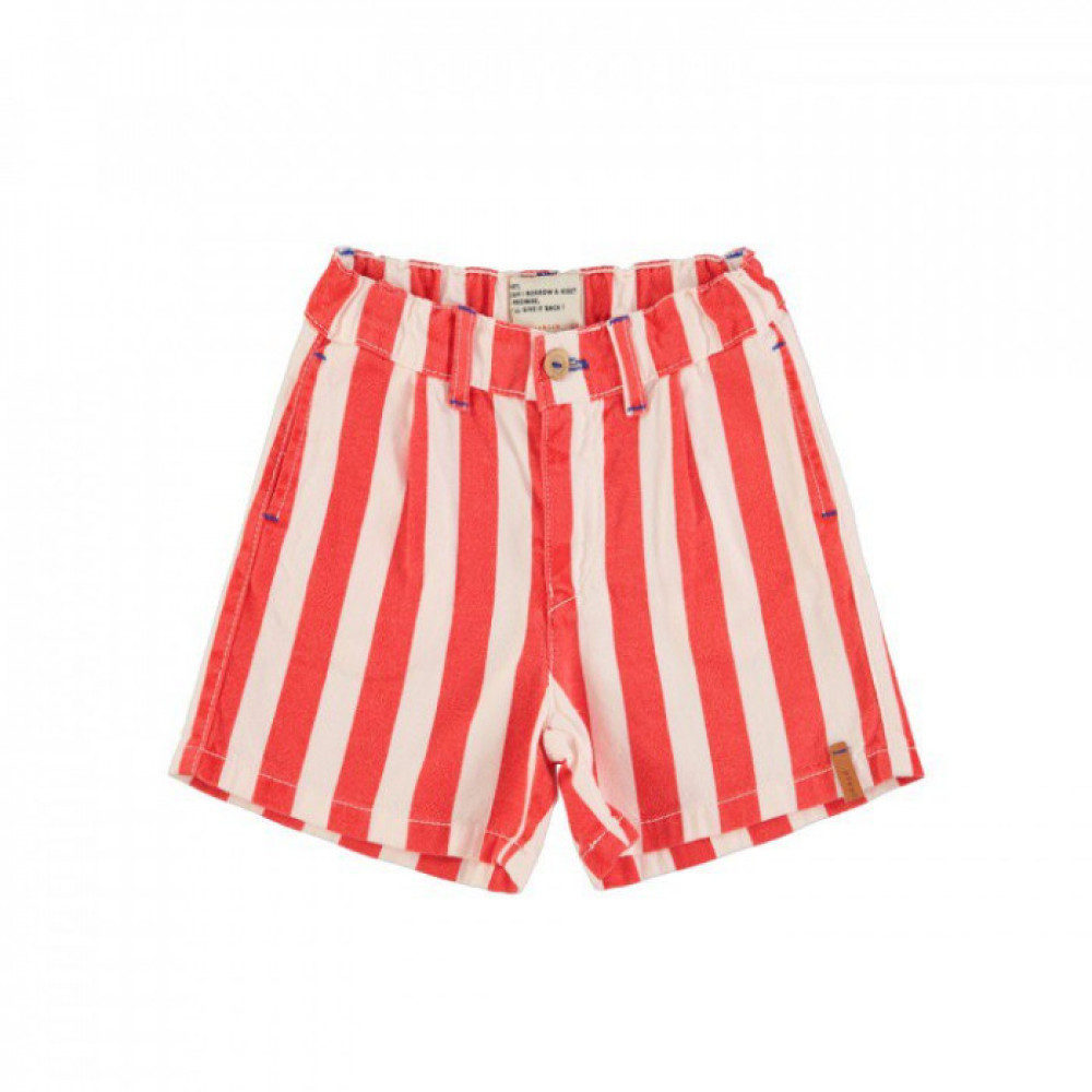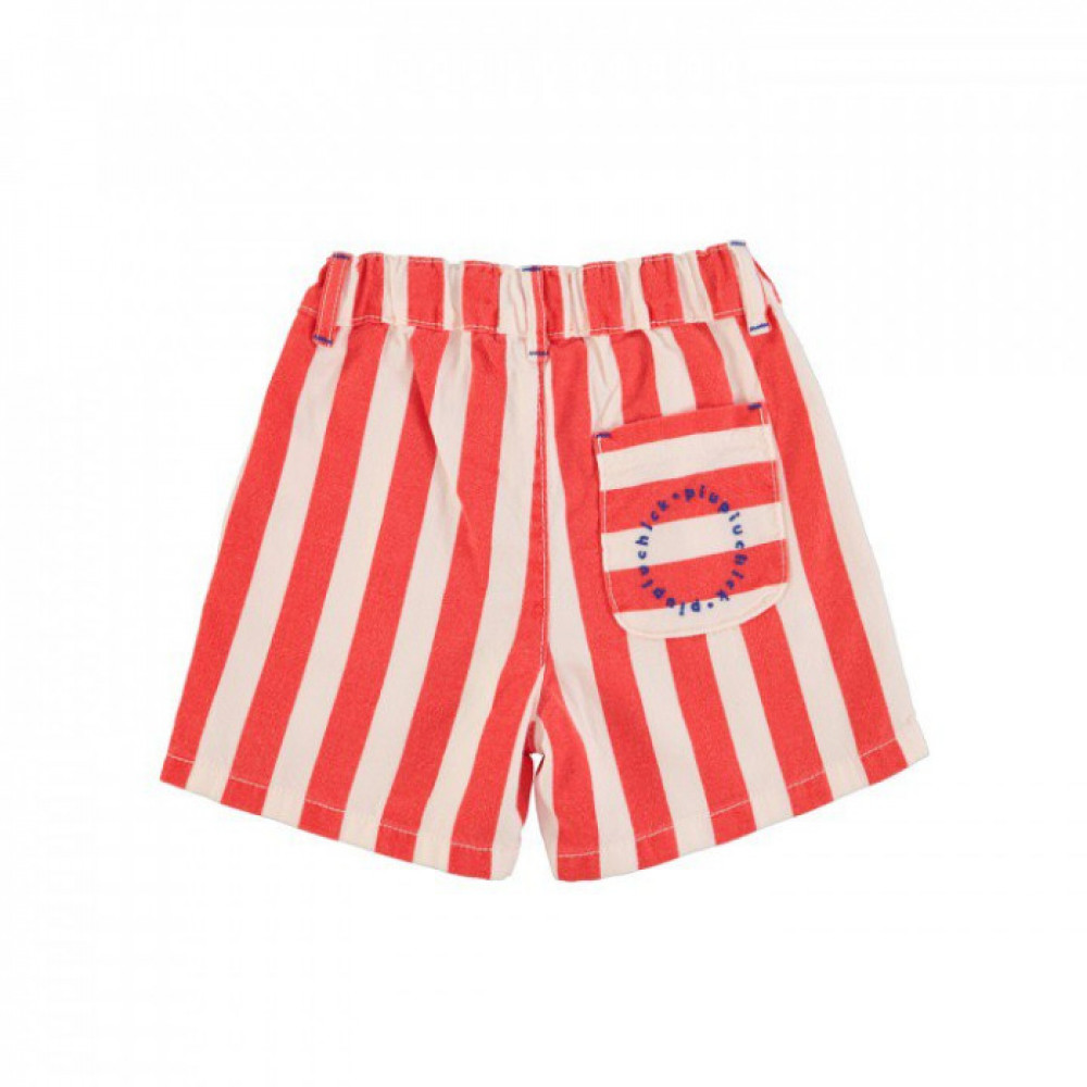 Шорти для хлопчика з м'якого бавовняного полотна з регульованою резинкою на талії. Бічні кишені. Прикрашені синьою вишивкою логотипу на задній кишені.