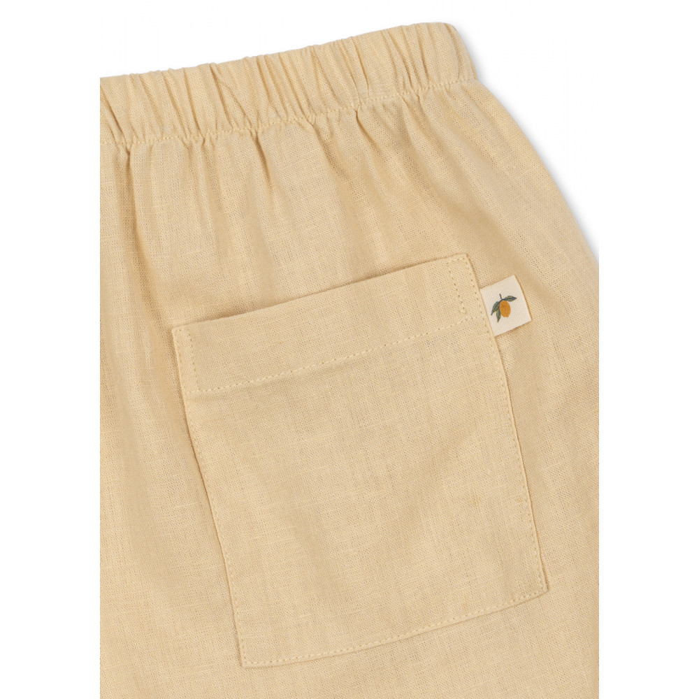 М'які шорти повсякденного силуету з тонкими боковими розрізами та гнучким еластичним поясом. Виготовлені з дихаючої суміші льону, яка забезпечує легкість та комфорт. Поєднуйте їх з сорочкою Franzen у тон для ідеального літнього образу.