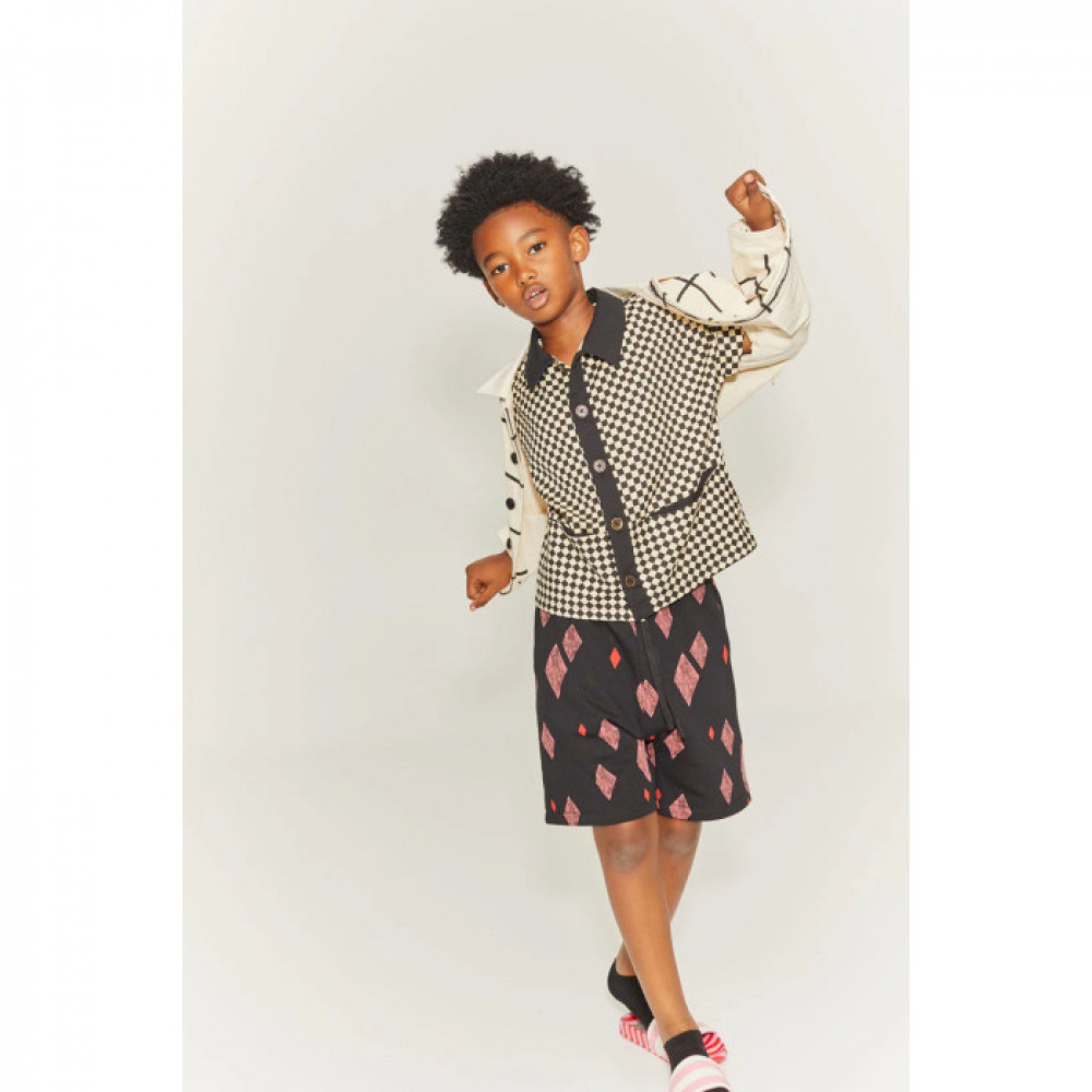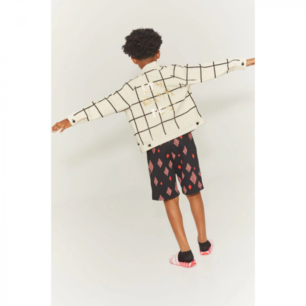Чудова низка рожевих і червоних діамантів на чорному тлі. Зручні шорти з еластичним поясом.
