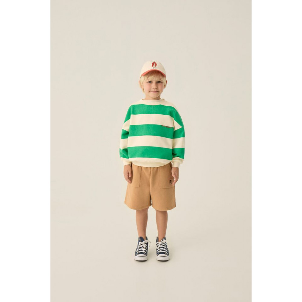Шорти з бавовняного флісу кольору «верблюжа шкіра» з принтом сонечка на спині. Це ідеальний одяг, який доповнить ваші літні образи та додасть їм яскравості. Мають еластичний пояс для більшого комфорту.