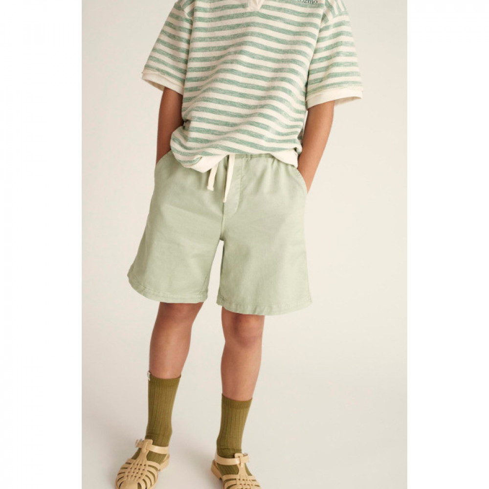 Шорти-бермуди з гладкої, легкої та еластичної бавовняної саржі. Еластичний пояс з регульованим шнурком. Бічні кишені та одна задня кишеня з клапаном. Контрастні деталі підкладки.