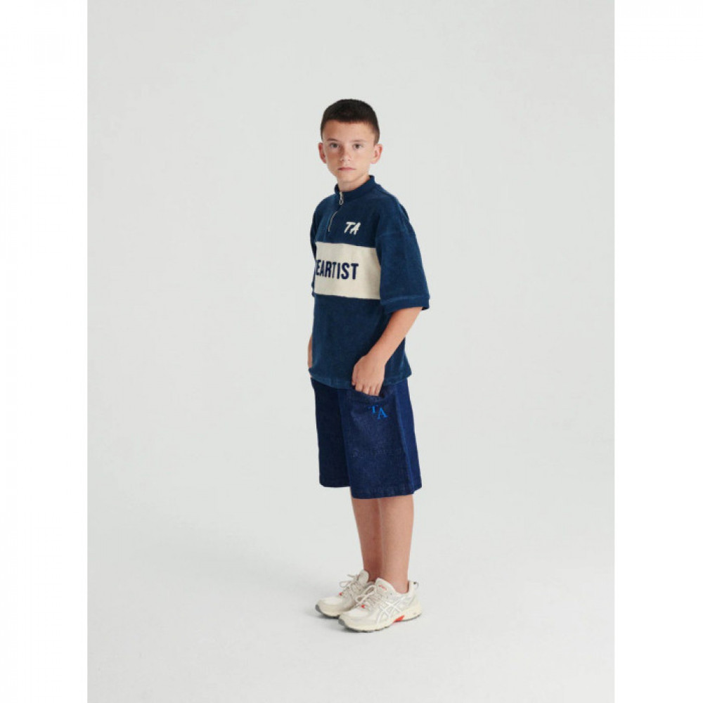 Шорти кольору Denim Blue виготовлені зі 100% бавовняної джинсової тканини. Ці темні джинсові шорти мають еластичний пояс і накладні кишені з вишитим логотипом TA контрастного кольору. Вони мають вільний крій. Зроблено в Іспанії.