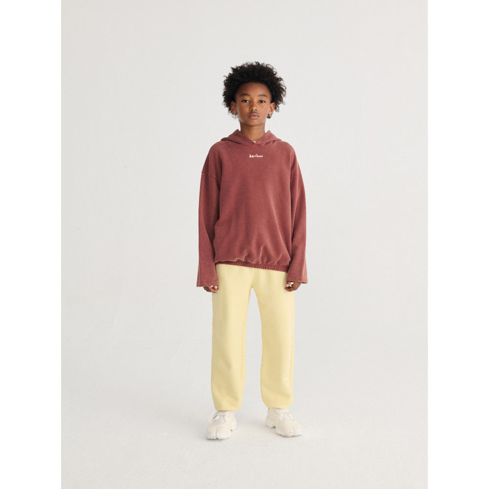 Коричнева толстовка. З капюшоном, еластичним низом, вишивкою, вільним кроєм та флісом. Виготовлено в Іспанії.