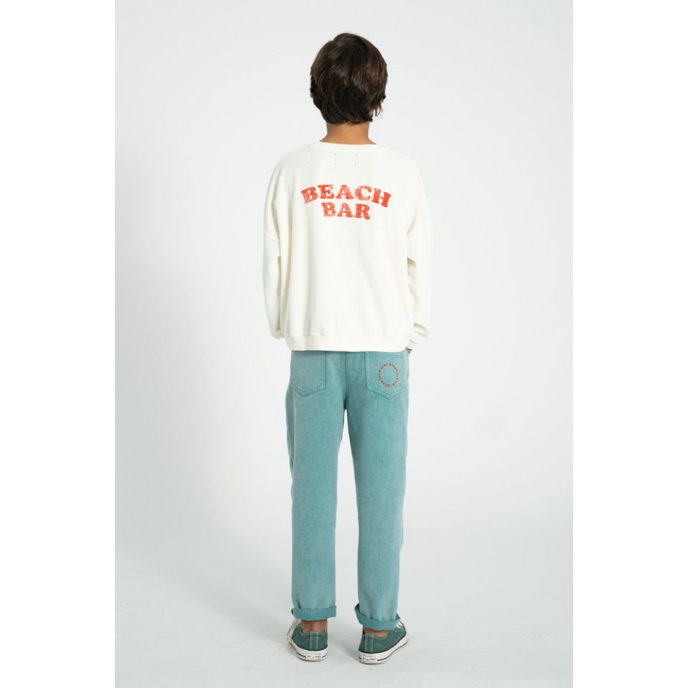 Светр з органічної махрової бавовни з принтами спереду та ззаду. Ребристі нижні краї. Червоні ґудзики на плечі для дитячих розмірів. Прати в холодній воді (макс. 30ºC). Не відбілювати. Не сушити в сушильній машині. Прасувати в прохолодній воді (макс. 110ºC). Не піддавати хімічному чищенню.